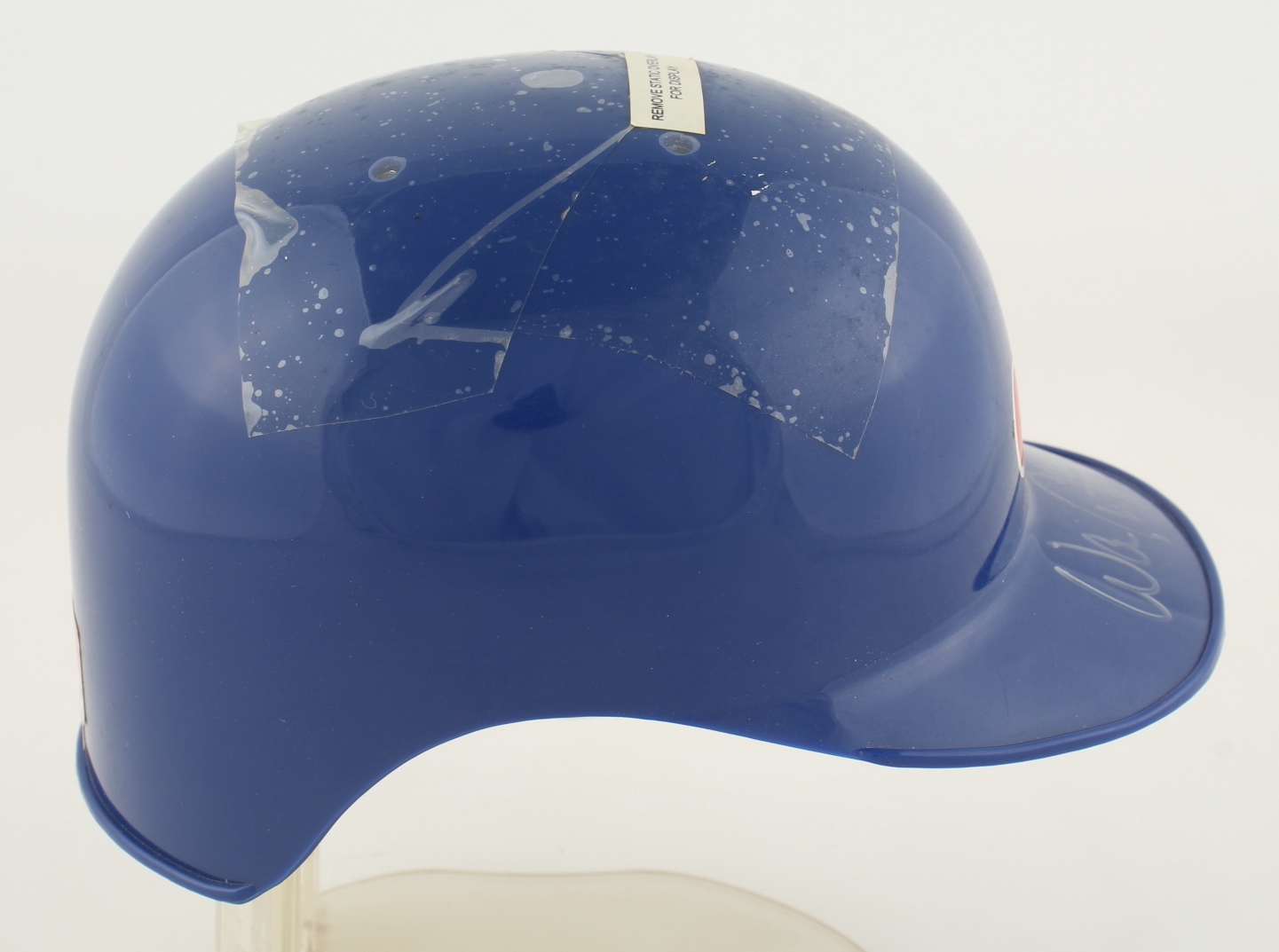 Riddell Montreal Expos mini batting helmet. Hand-signed by Warren Cromartie. Please note, there is tape on the top of the mini helmet and the stand is not included.