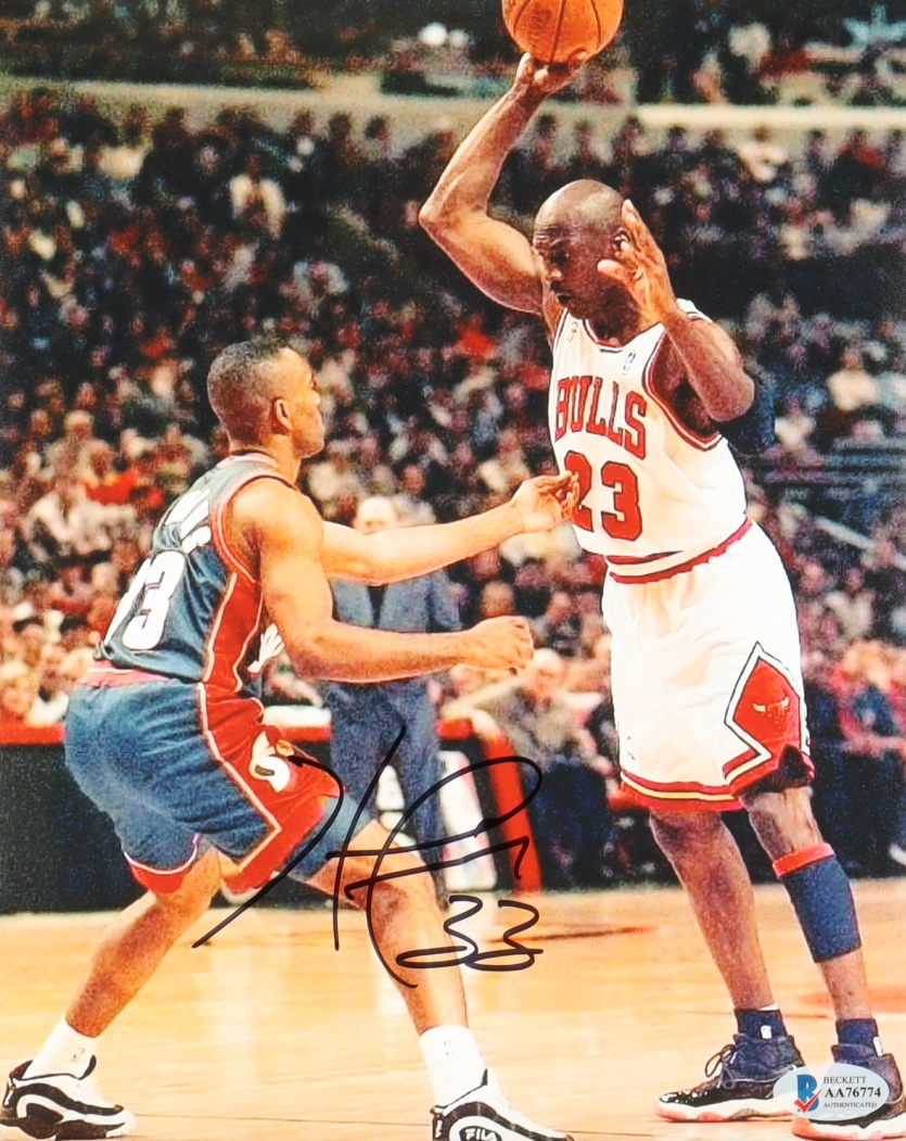 Photo measures 8" x 10" in size and has been hand-signed by Hersey Hawkins (Seattle Supersonics).