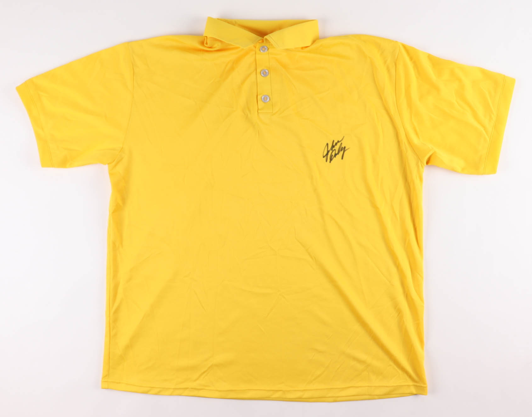 Custom collar golf polo shirt, size XL. Hand-signed by John Daly.