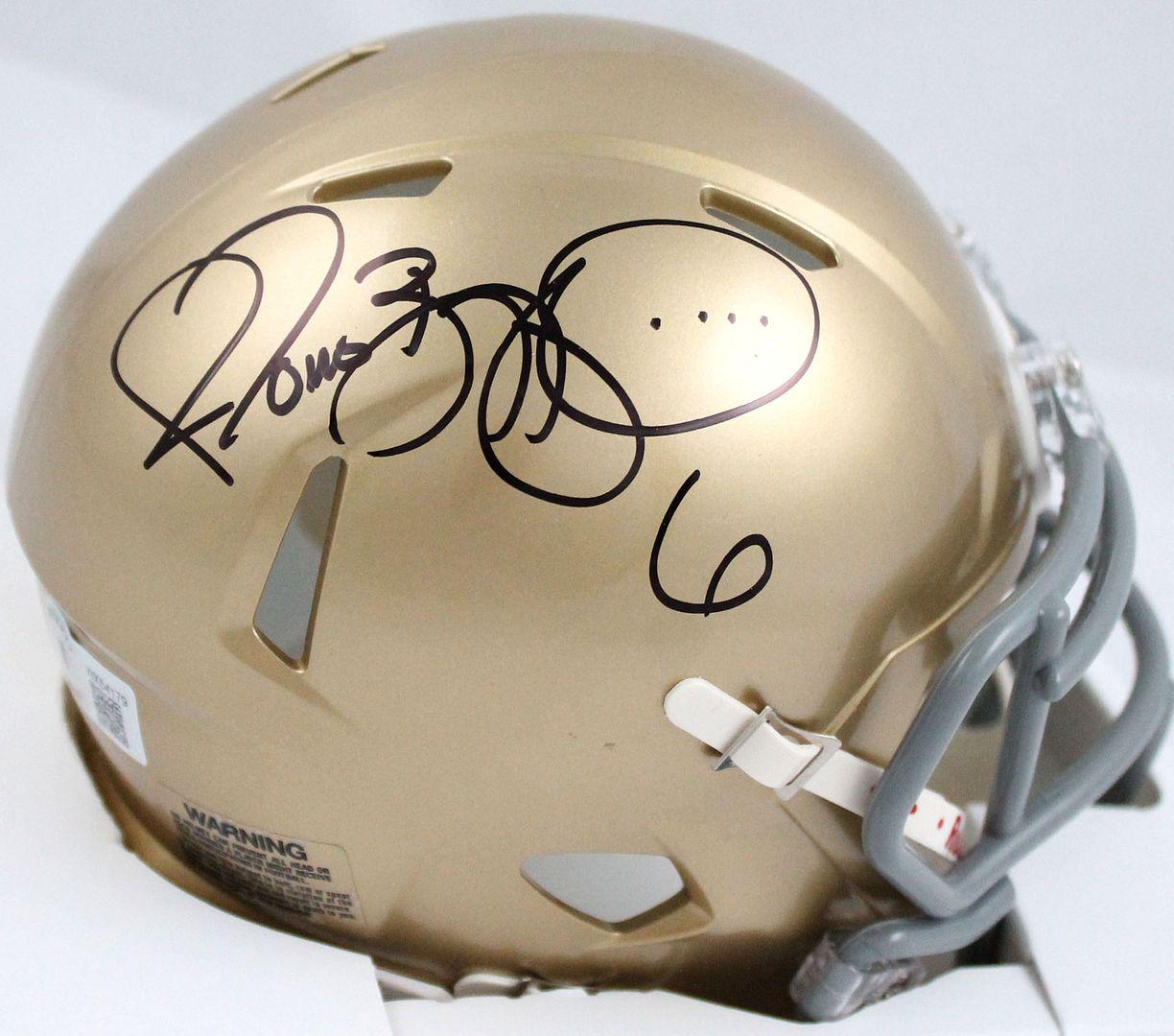 Riddell Notre Dame Fighting Irish Speed Mini Helmet. Hand Signed By Jerome Bettis (HOF).
