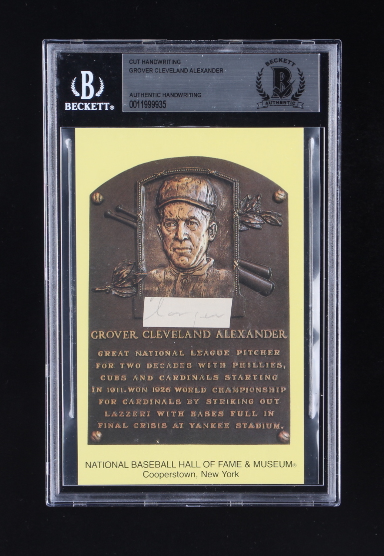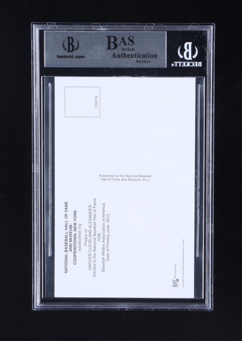 Grover Cleveland Alexander Signed Gold Hall of Fame Plaque Postcard Cut (BGS)