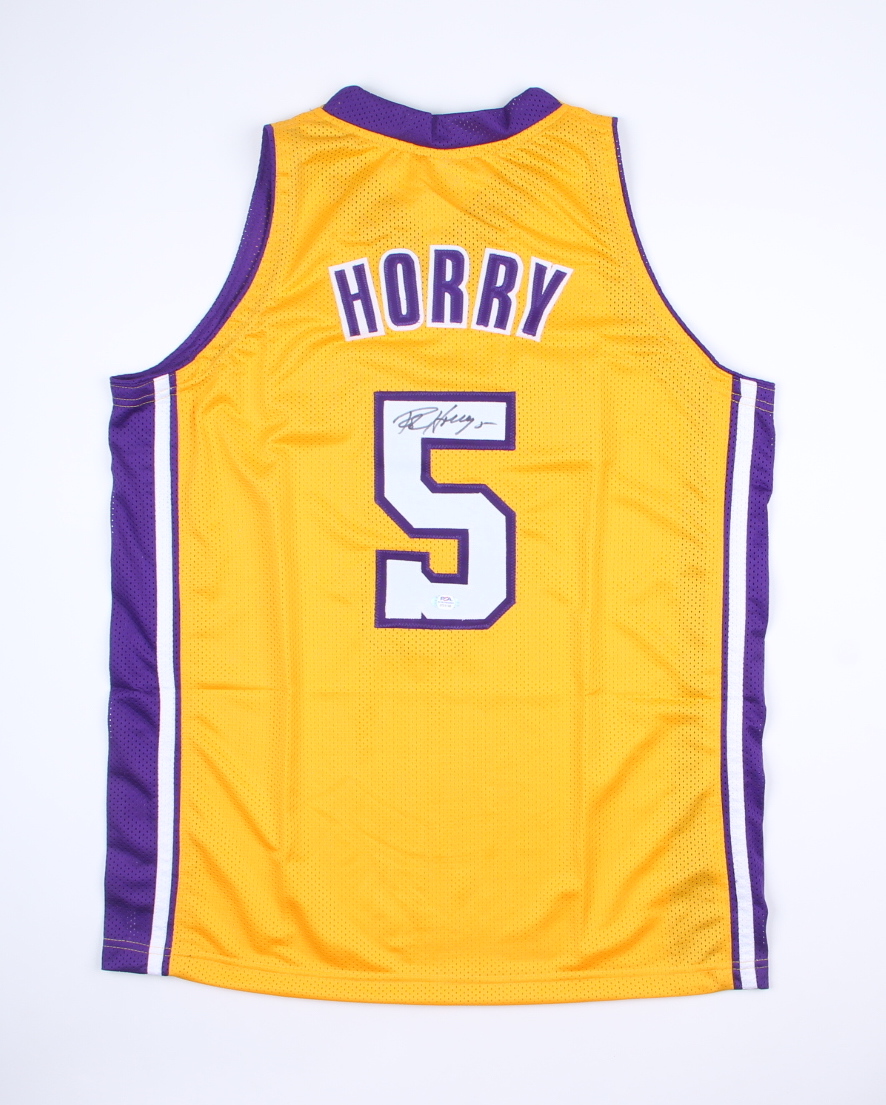 Custom on-court style jersey. Everything is sewn on, size XL. Hand-signed by Robert Horry.