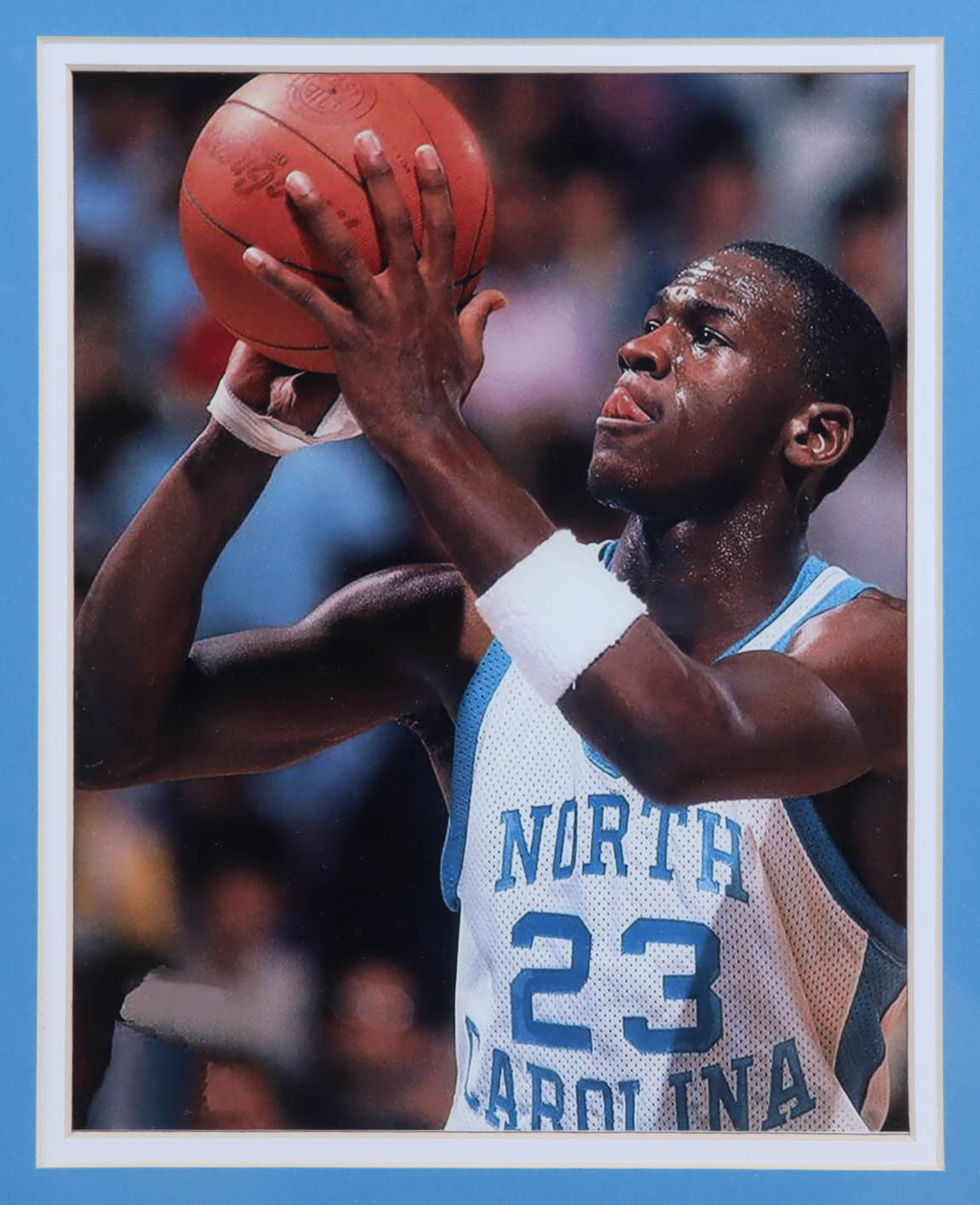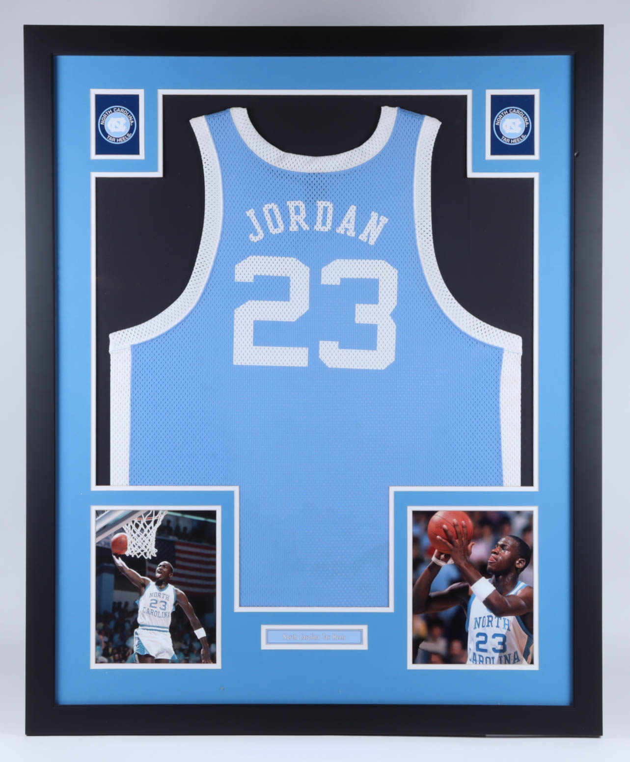 Custom frame measures 35.5" x 43" in size and features a jersey of Michael Jordan (HOF). Please note that the display is unsigned.