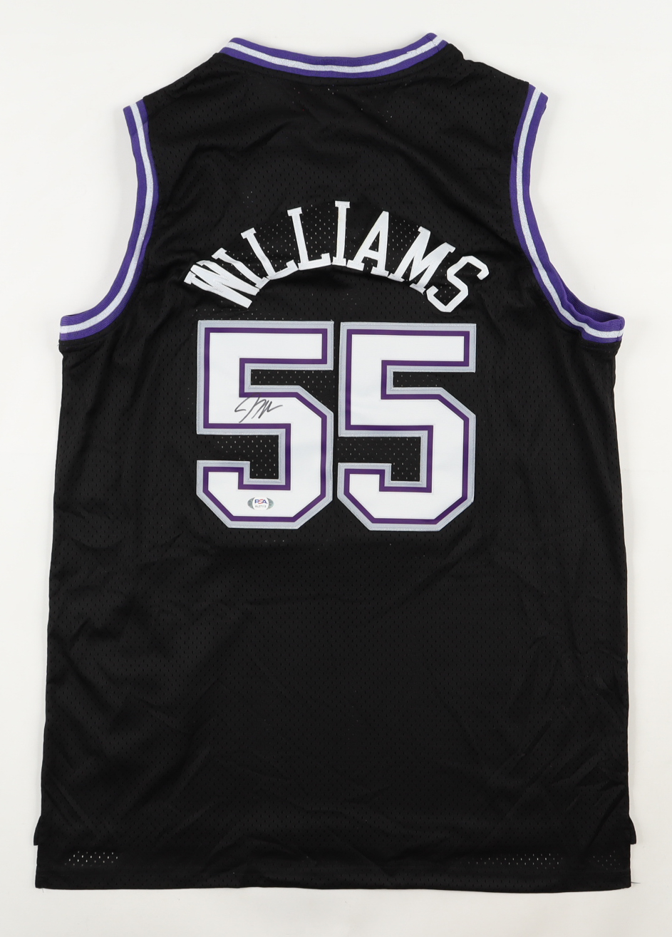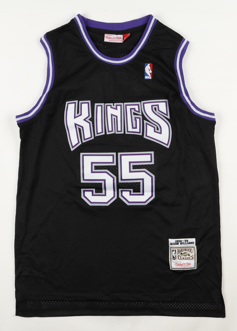 Mitchell & Ness on-court style jersey with everything sewn on, size 44 (L). Hand-signed by Jason Williams (Sacramento Kings).