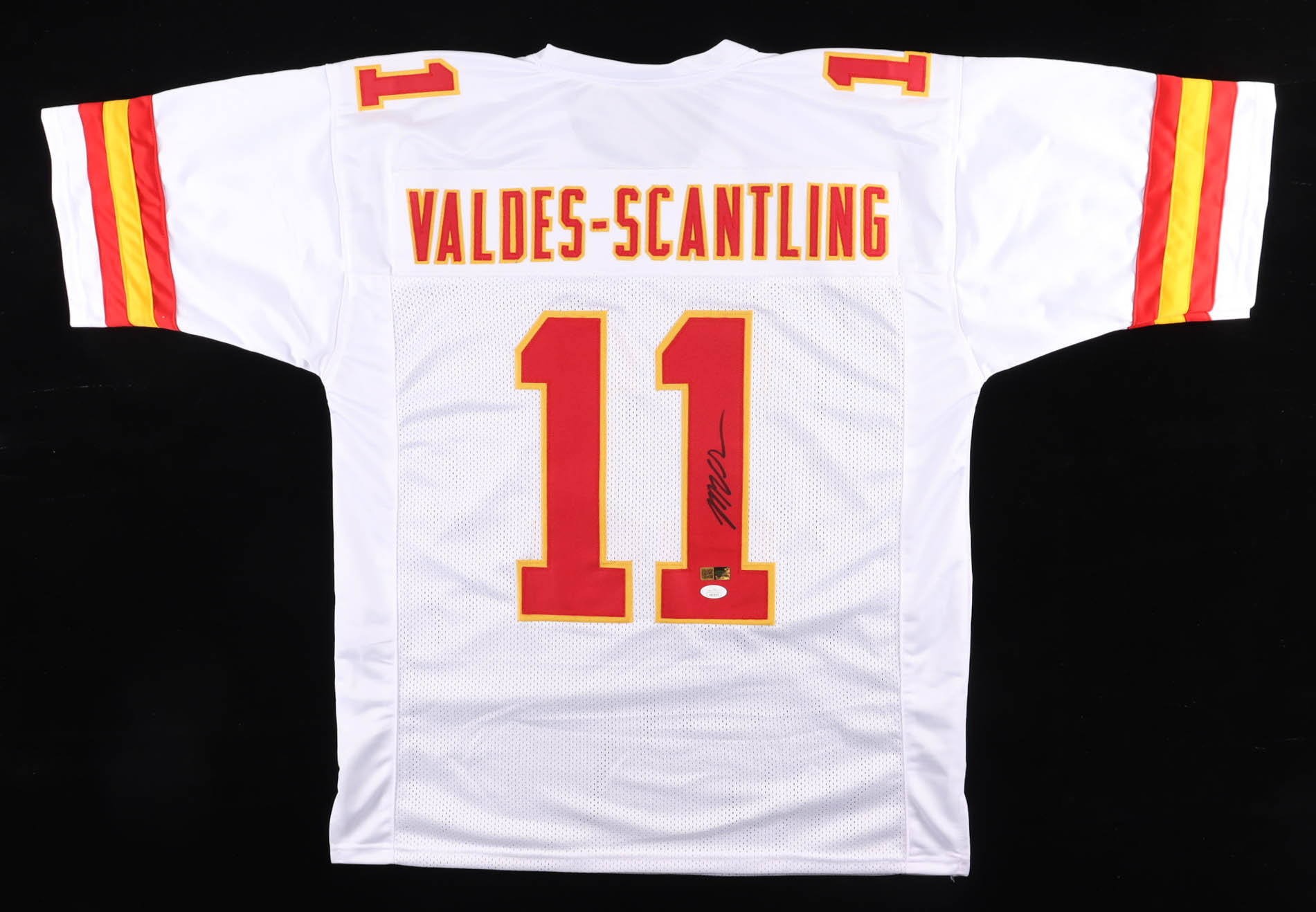 Custom on-field style jersey. Everything is sewn on, size XL. Hand-signed by Marquez Valdes-Scantling.
