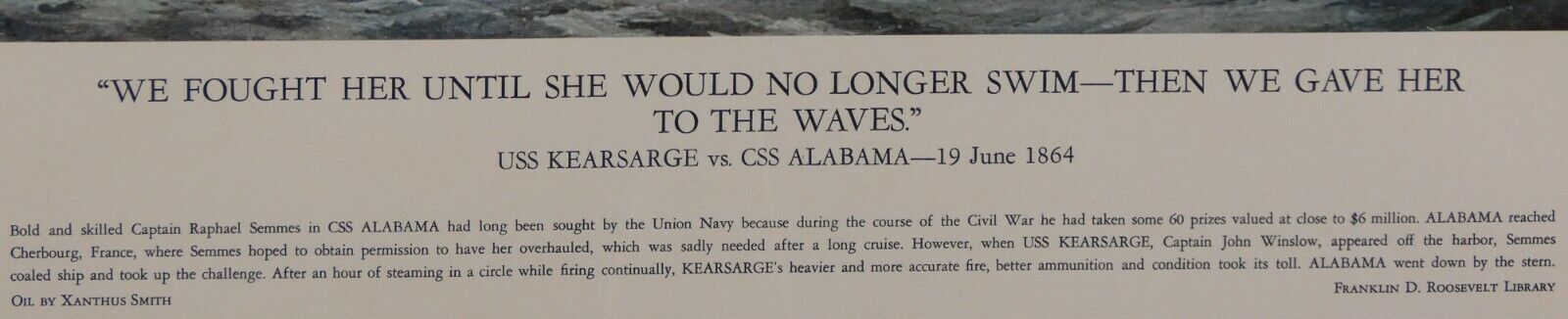Custom frame measures approximately 22" x 27" in size and features a photo of "USS Kearsarge vs CSS Alabama".