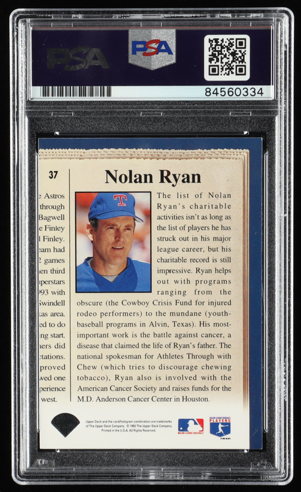 Nolan Ryan Signed 1993 Upper Deck #37 Community Heroes (PSA)