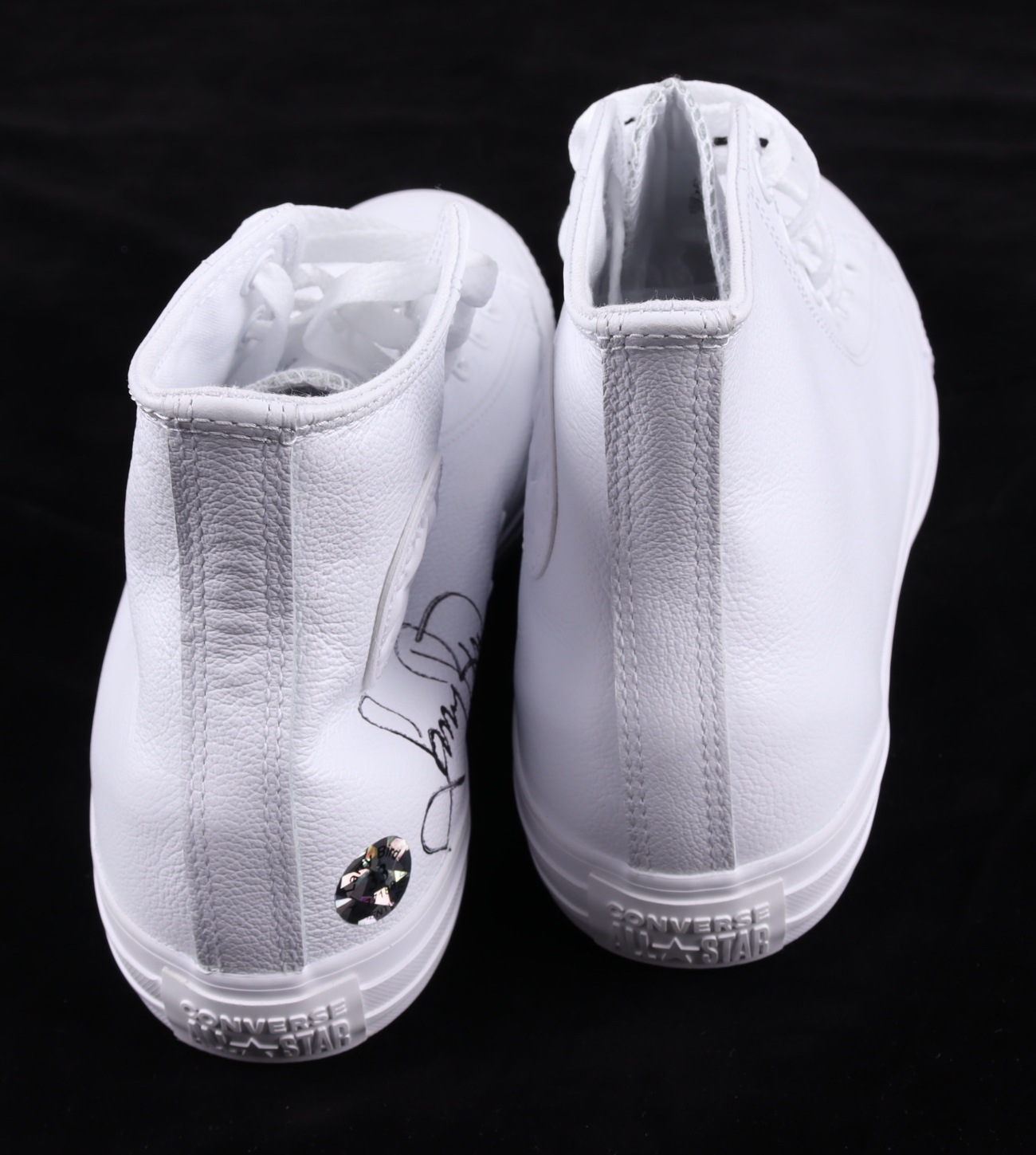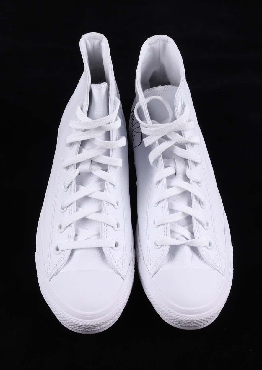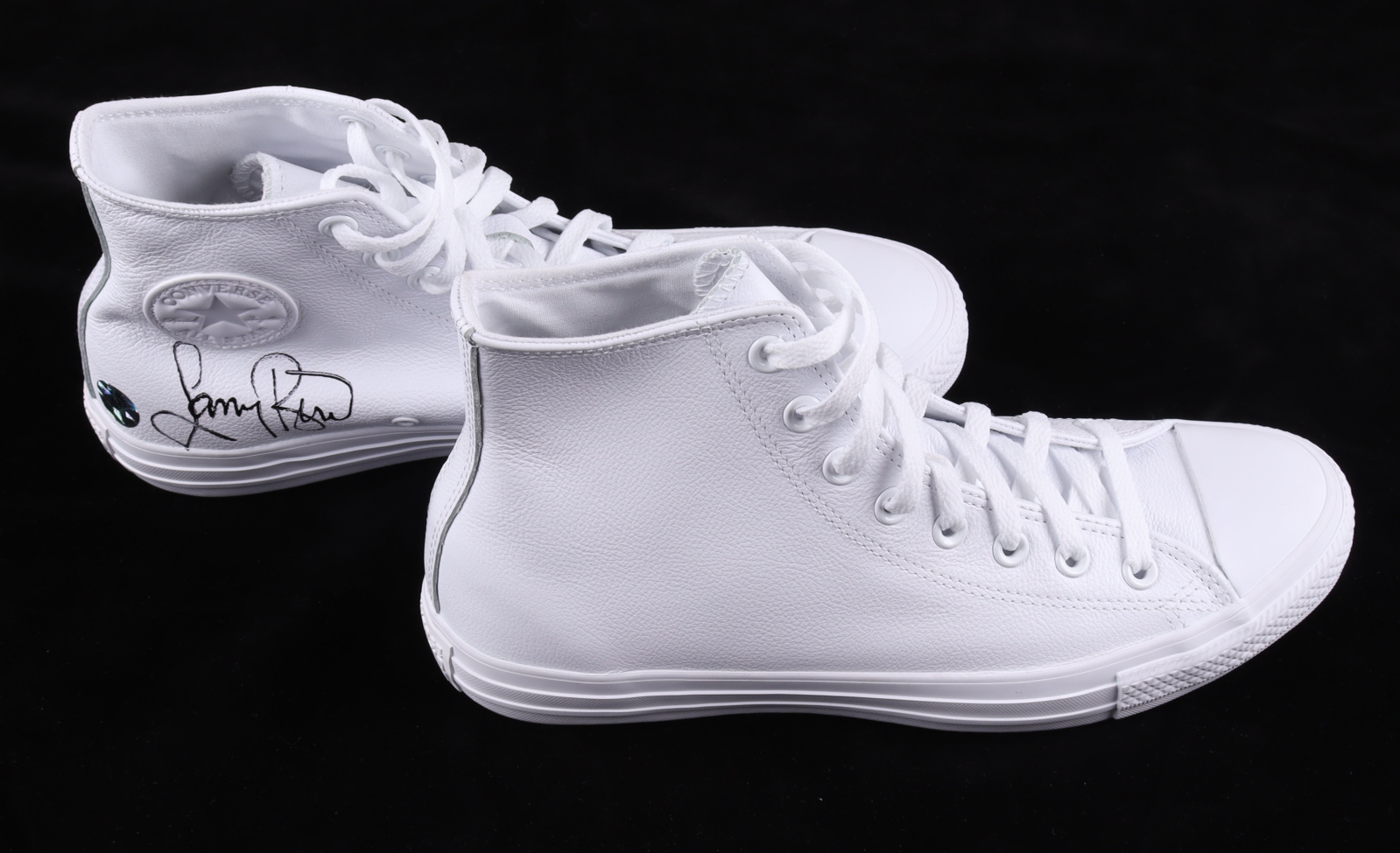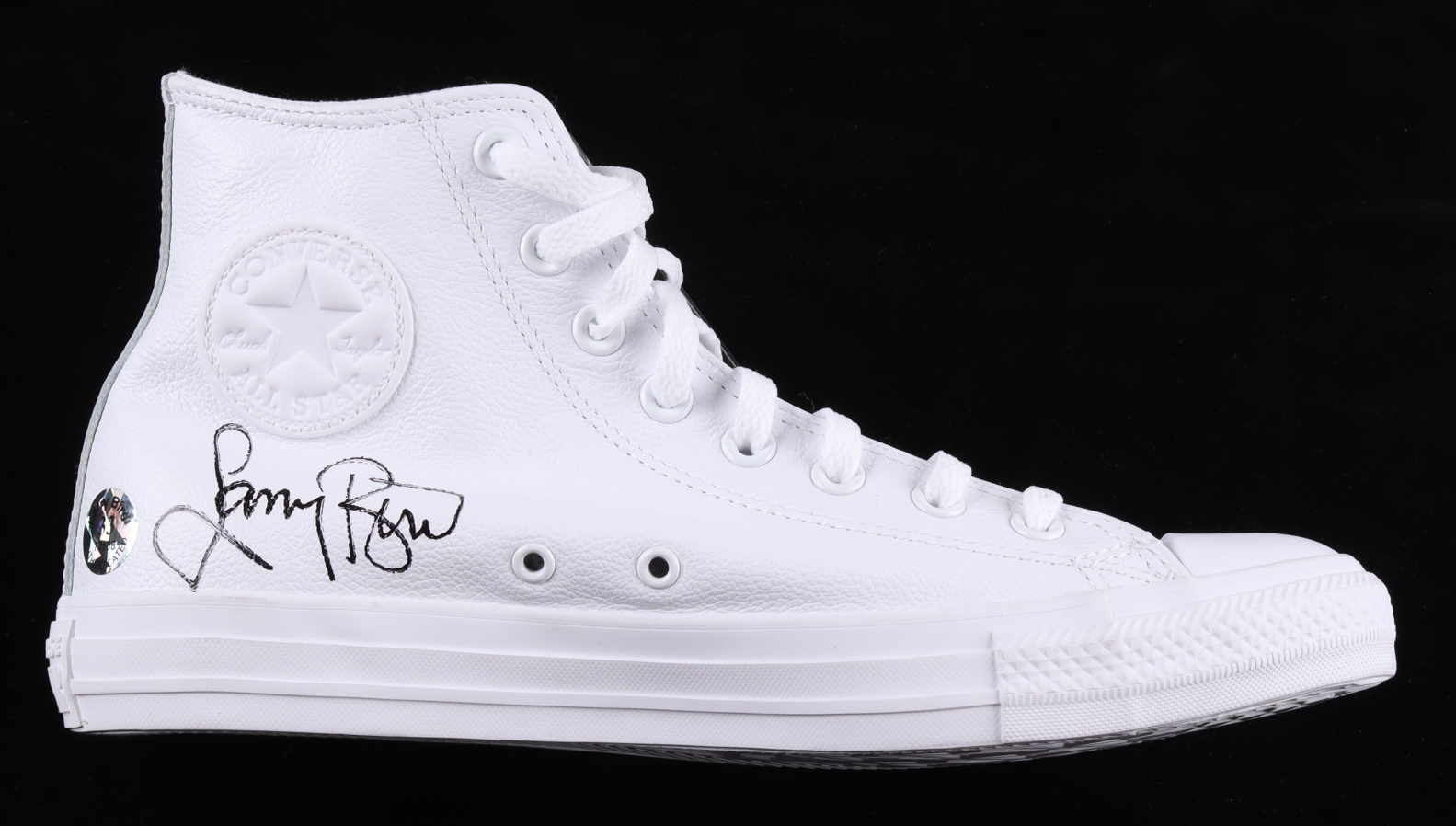 All leather Converse basketball shoe. Hand-signed by Larry Bird (Boston Celtics, HOF). Please note, only the left shoe has been hand-signed.
