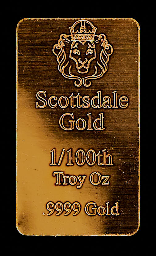 Scottsdale Gold 1/100 Troy Oz .9999 Fine Gold Bullion Bar