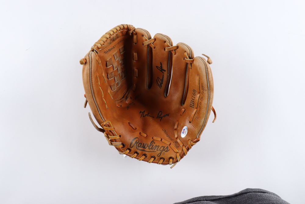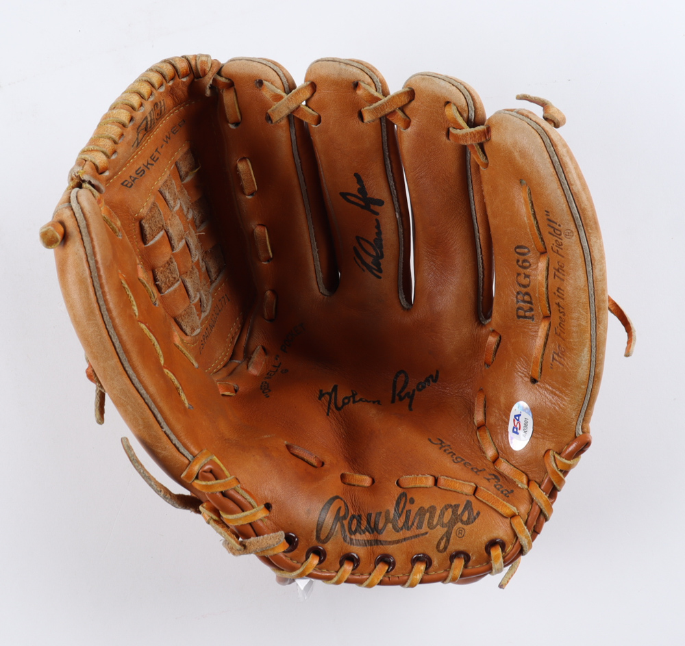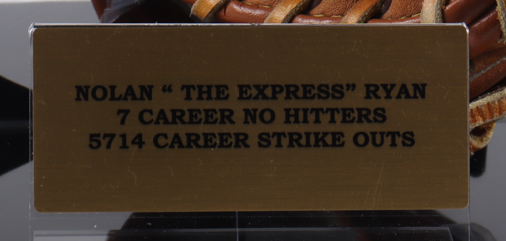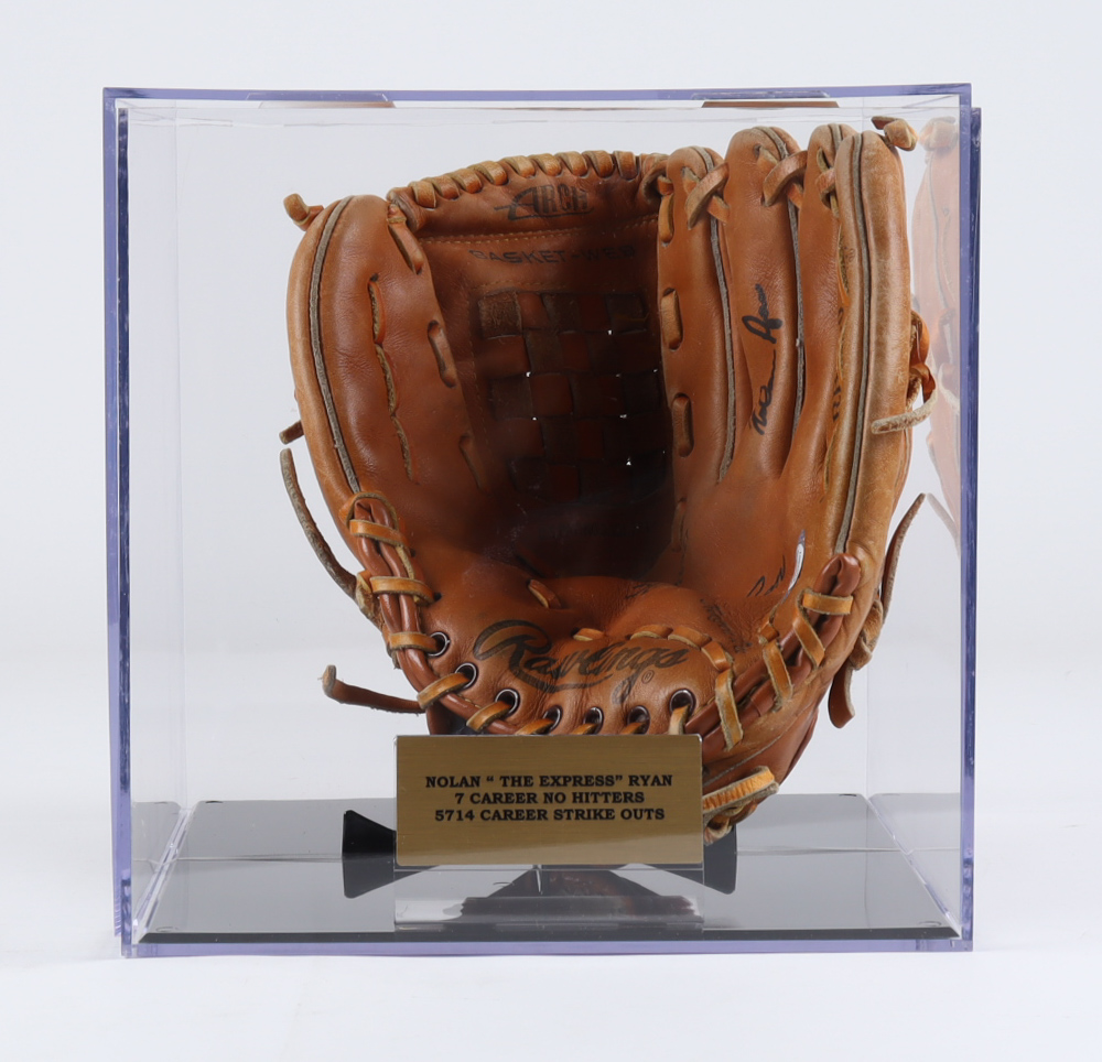Rawlings player model baseball glove with display case. Hand-signed by Nolan Ryan (Texas Rangers, HOF).
