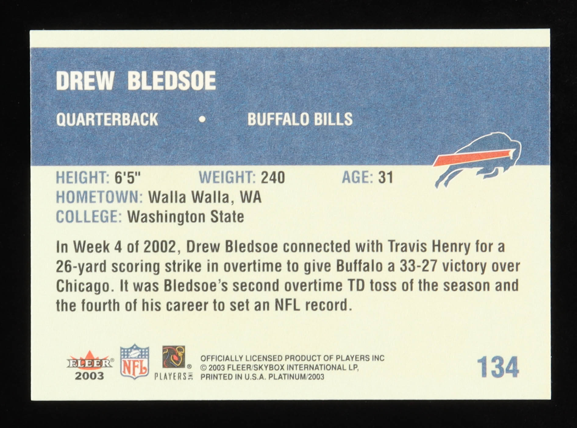 Drew Bledsoe 2003 Fleer Platinum #134