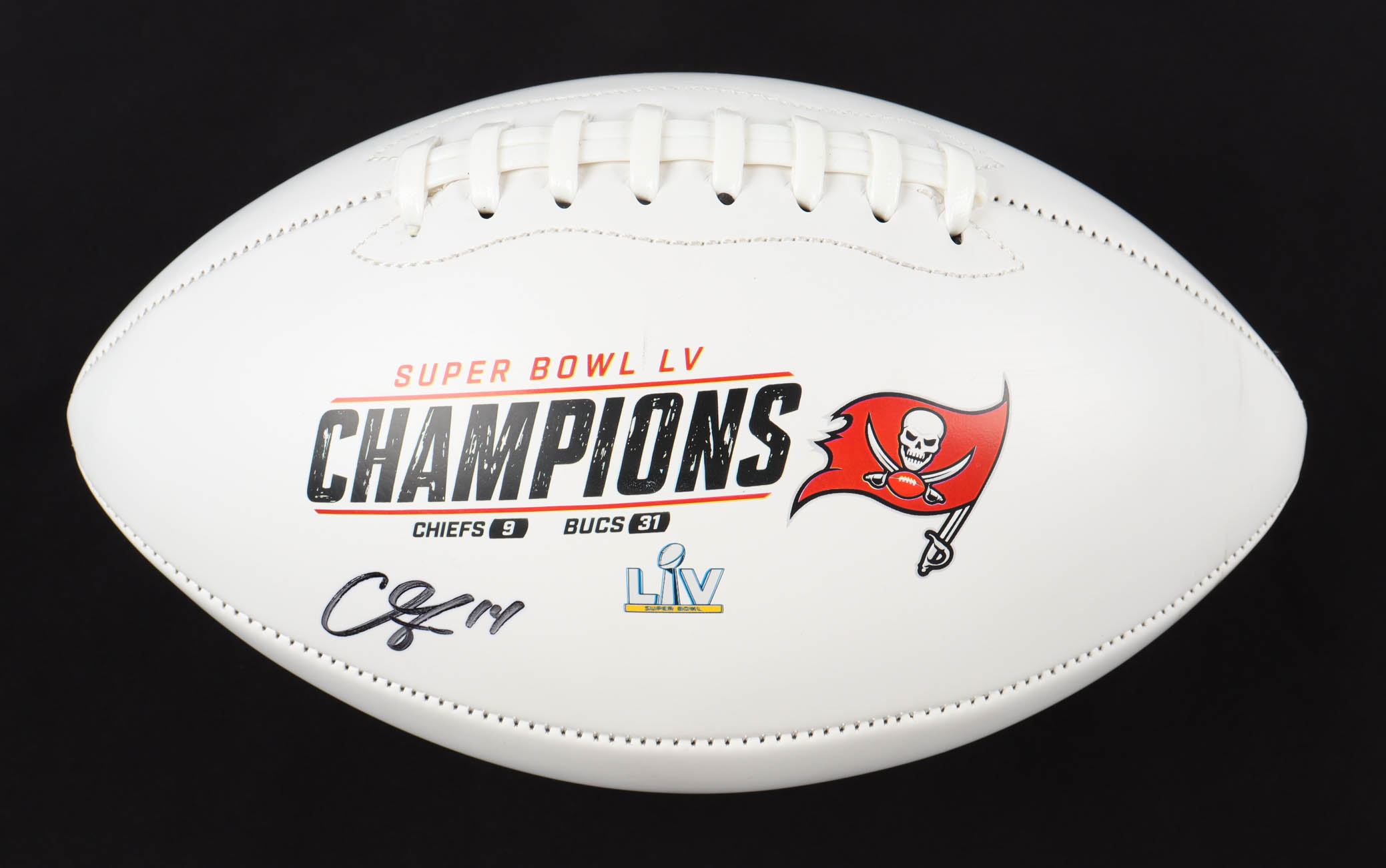 Tampa Bay Buccaneers Logo Football has been hand-signed by Chris Godwin. Please see images regarding scratches on both logo panels.