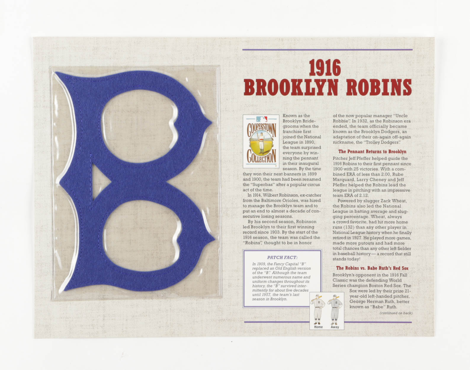 1916 Brooklyn Robins Cloth Uniform Patch