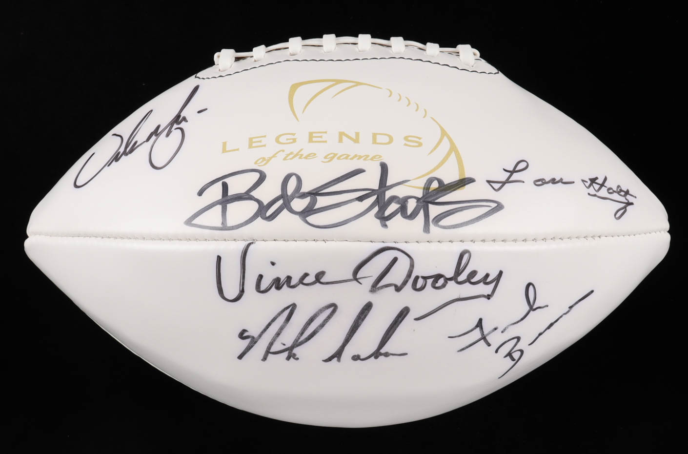 Big Game Legends of the Game Football has been hand-signed by (6) with Nick Saban, Urban Meyer, Lou Holtz, Bob Stoops, Vince Dooley and Frank Beamer.