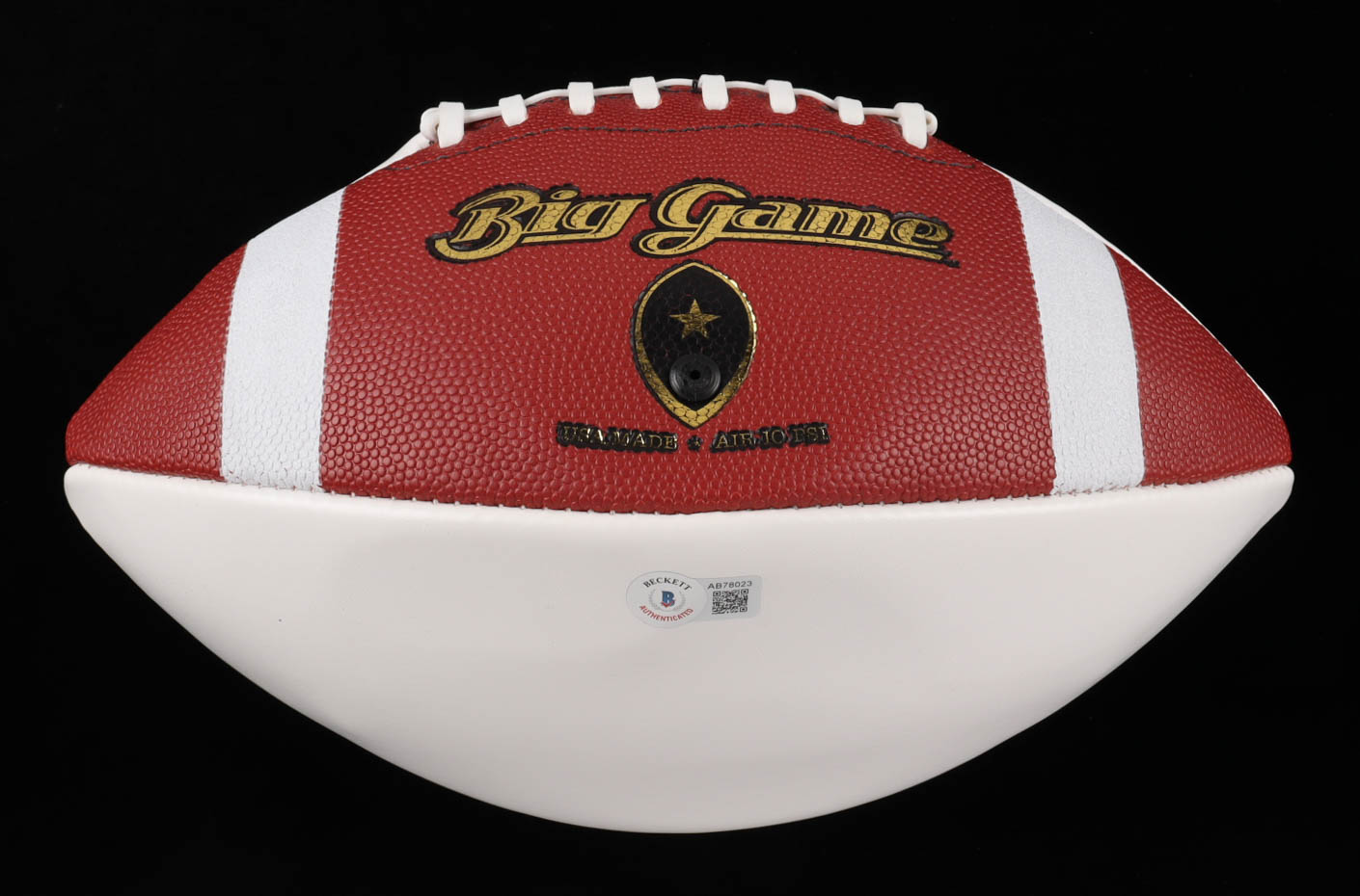 Big Game Football Signed by (6) with Nick Saban, Urban Meyer, Lou Holtz, Bob Stoops (Beckett)