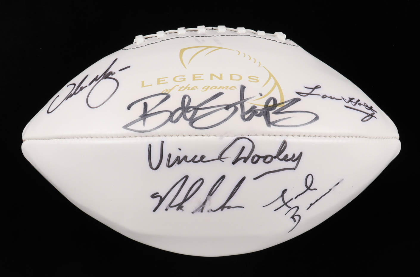 Big Game Legends of the Game Football has been hand-signed by (6) with Nick Saban, Urban Meyer, Lou Holtz, Bob Stoops, Vince Dooley and Frank Beamer.