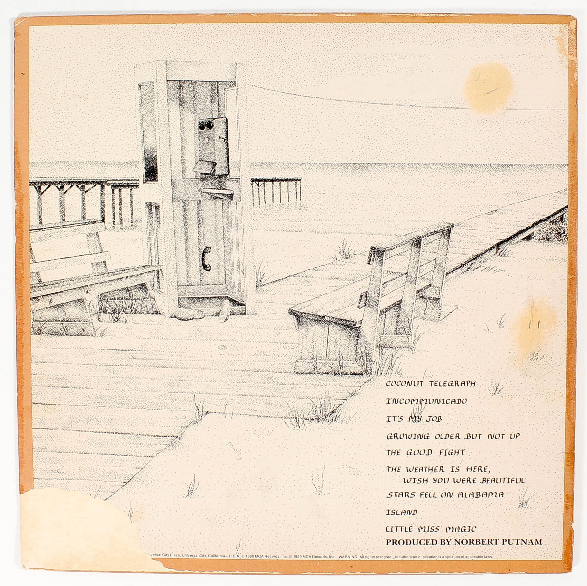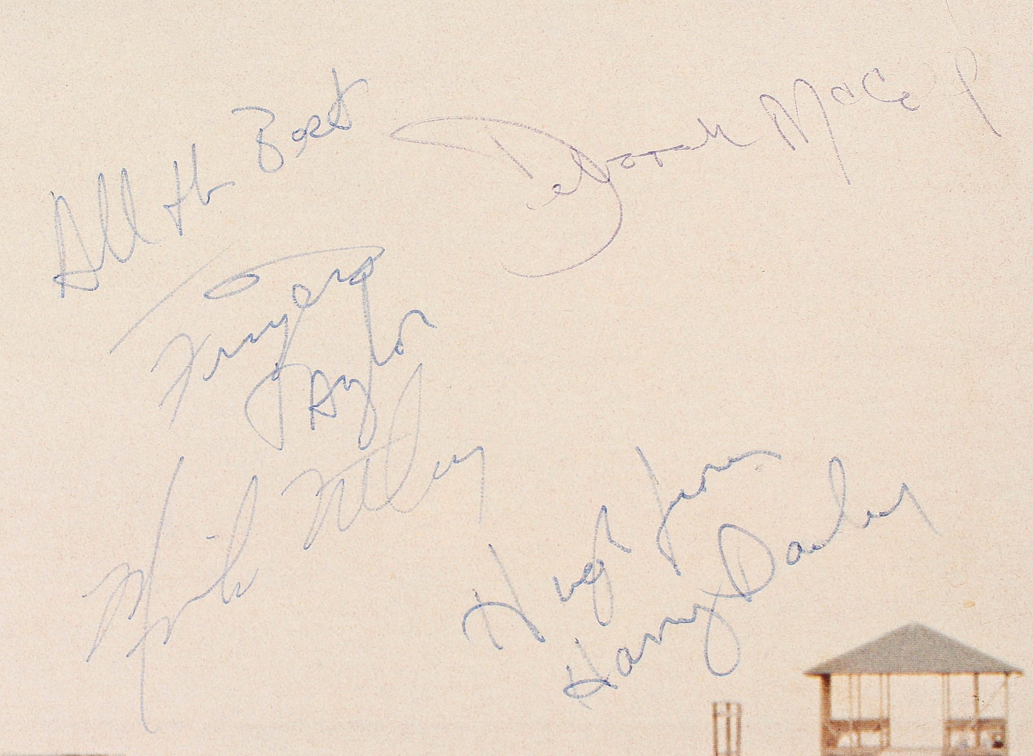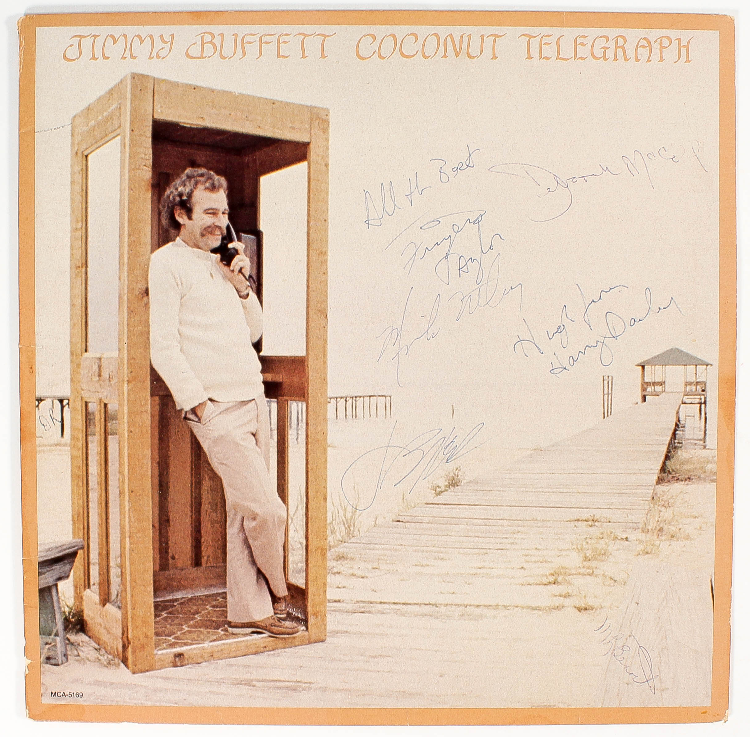 Cover has been hand-signed in blue ink pen pen by Jimmy Buffett, Fingers Taylor, Deborah McCoil, Mike Utley, Harry Dailey and M. L. Benoit. Please note, album cover has minor wear due to age.
