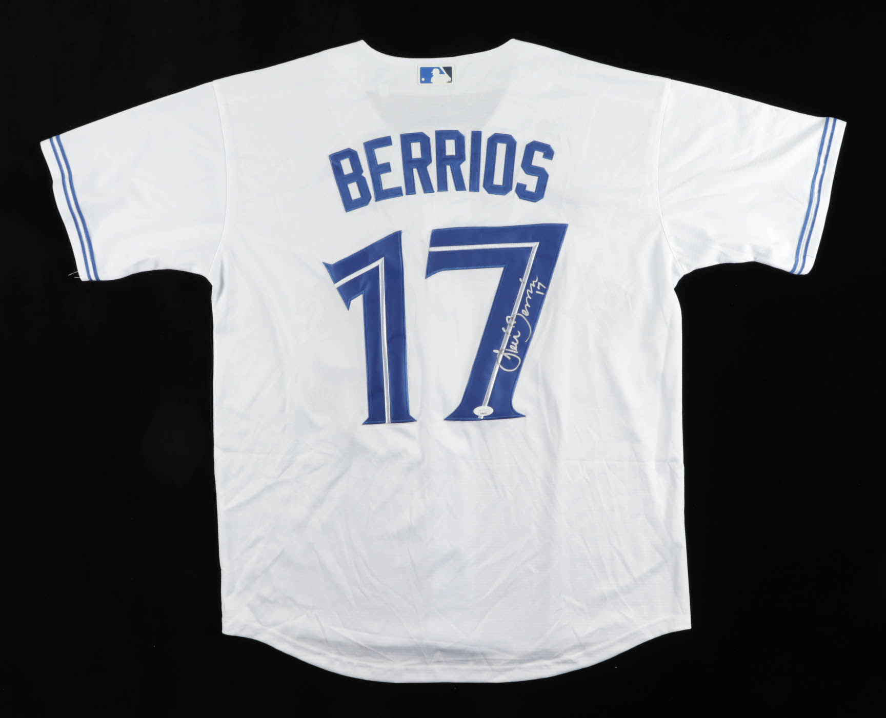 On-field style jersey. Everything sewn on, size XL. Hand-signed by Jose Berrios.