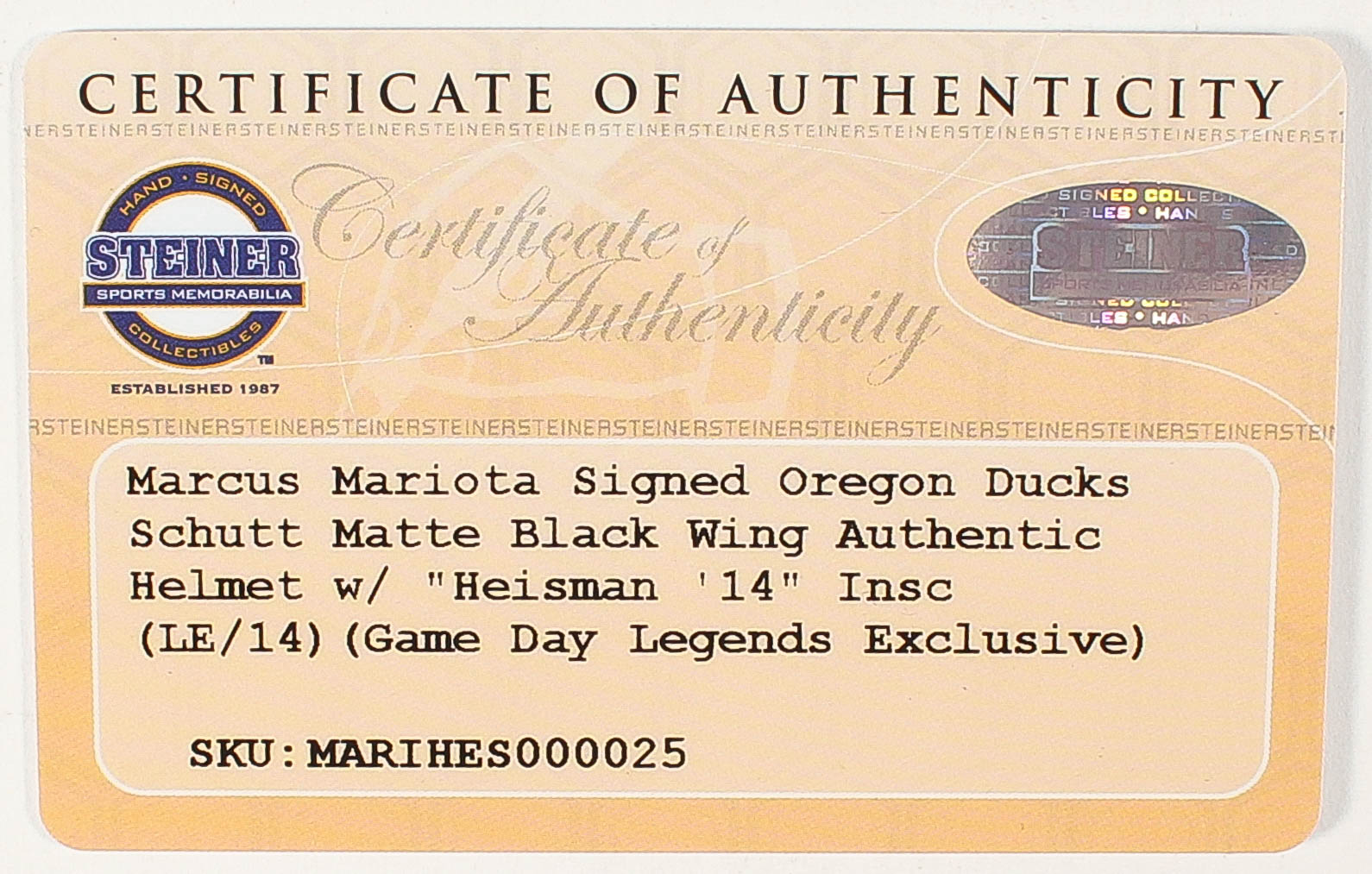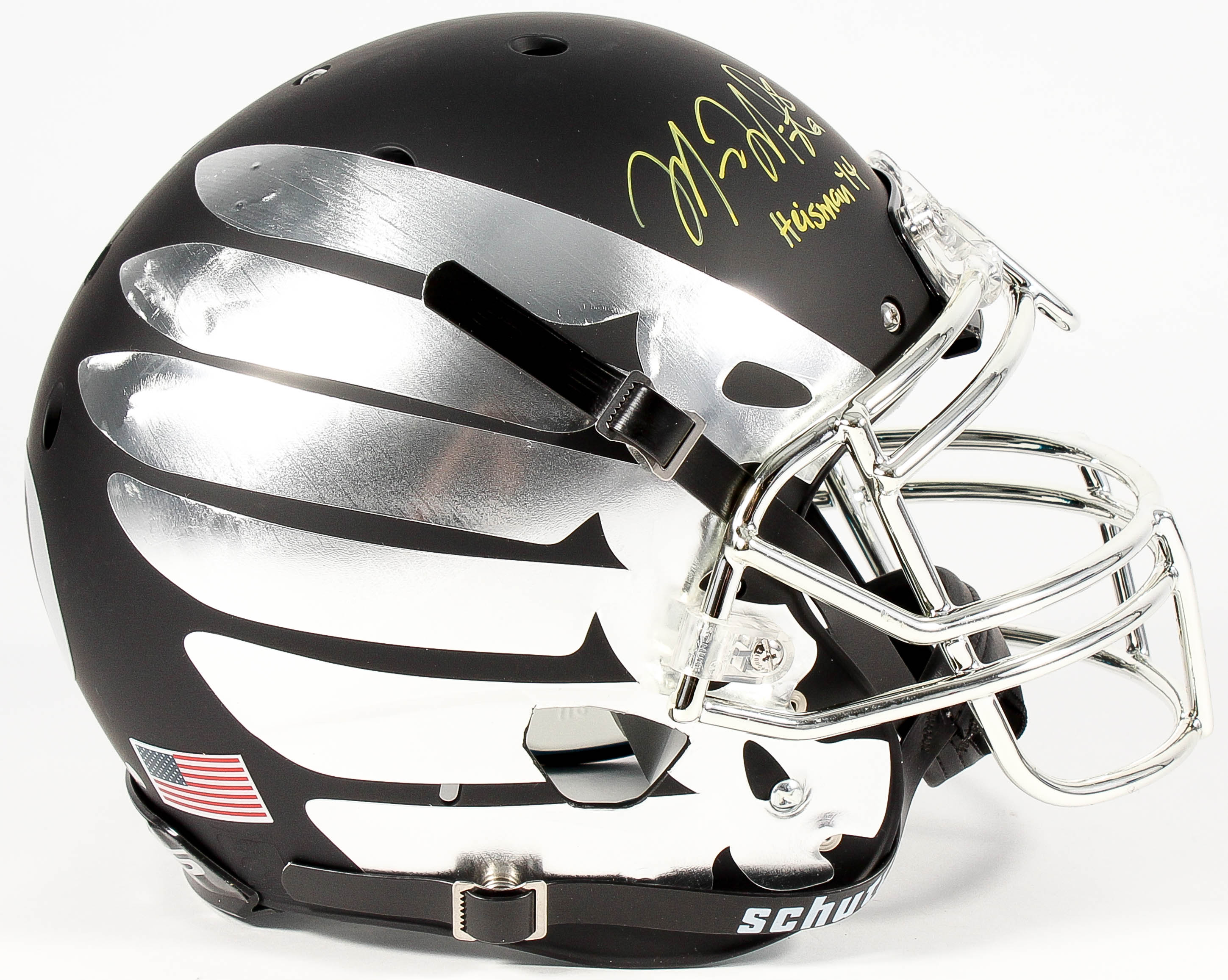 Marcus Mariota Signed LE Oregon Ducks Full-Size Authentic Pro-Line Custom Matte Black & Chrome Wings Helmet Inscribed "Heisman '14" (Steiner COA)