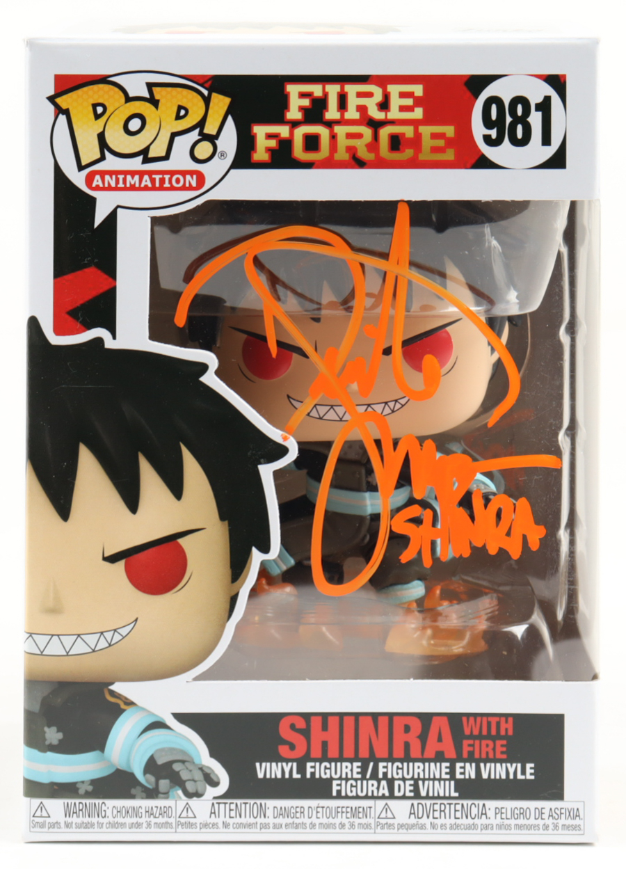 Derick Snow Signed "Fire Force" #981 Shinra with Fire Funko Pop! Vinyl Figure Inscribed "Shinra" (JSA)