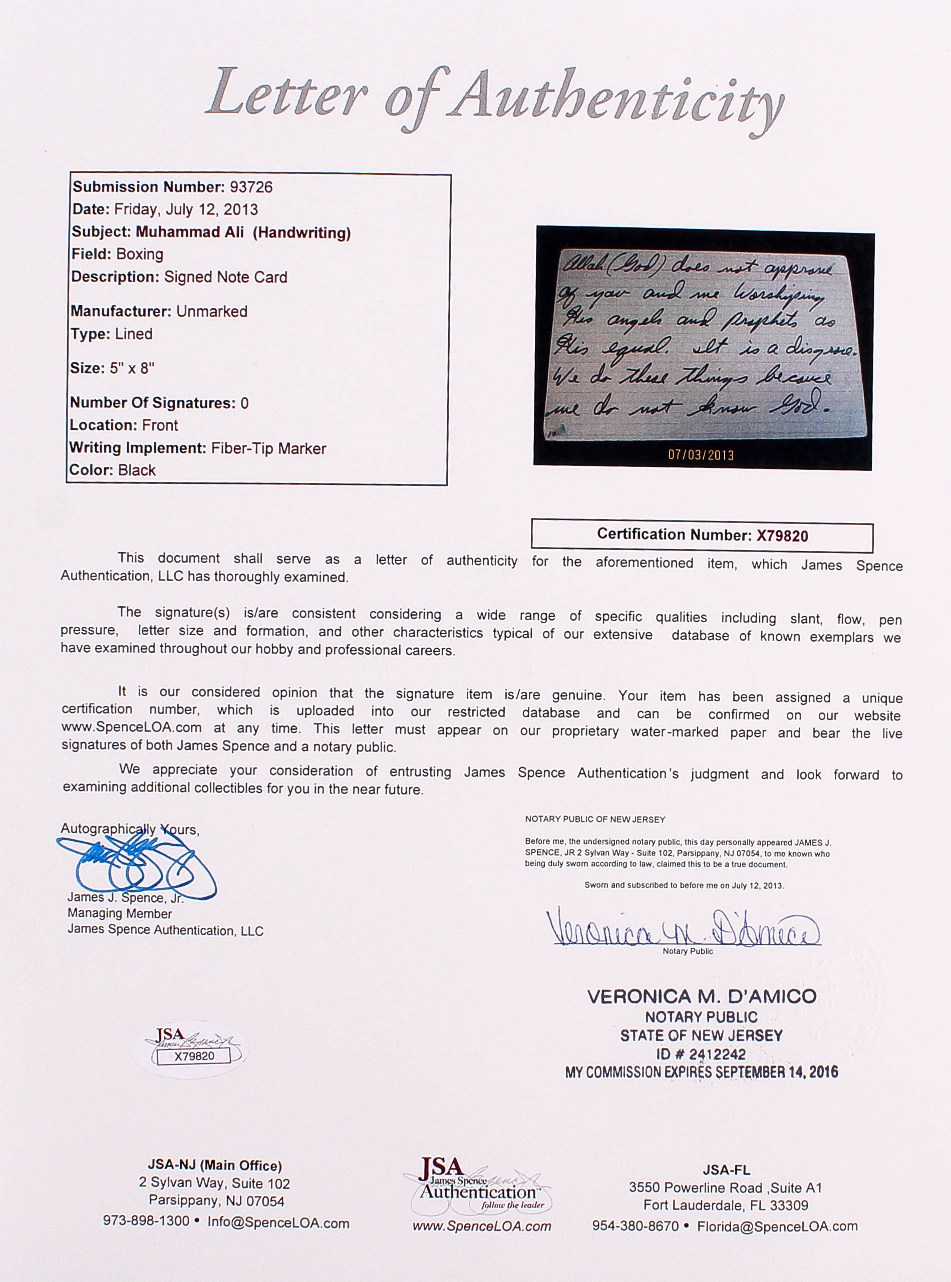 The autograph and the hand-written letter each include an official James Spence Authentication (JSA) hologram and matching LOA for authenticity purposes.