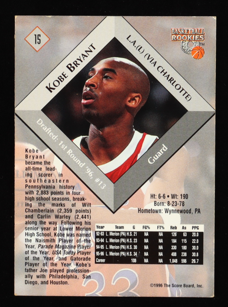 Kobe Bryant 1996 Score Board Autographed BK #15 RC