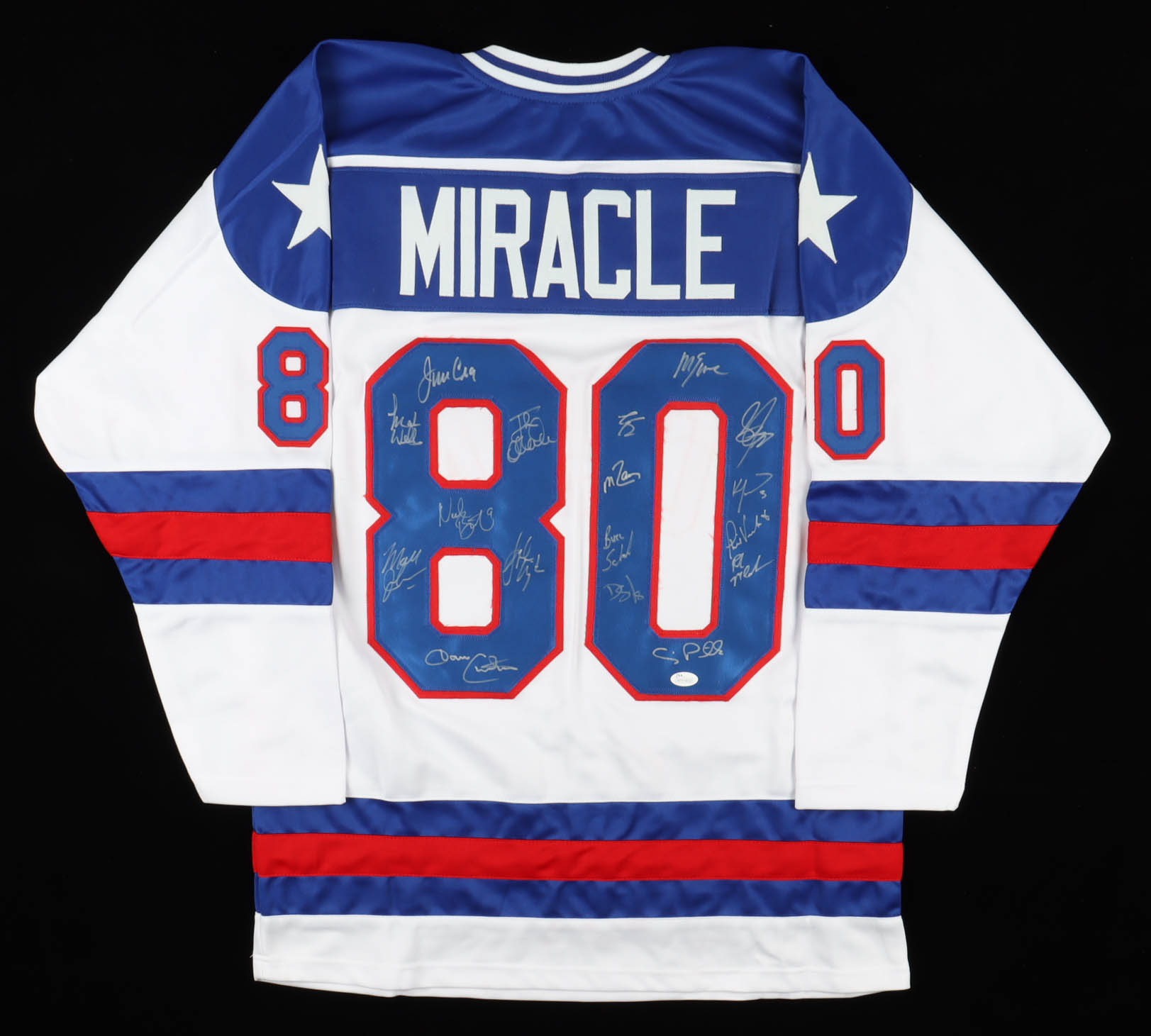 1980 Team USA Hockey "Miracle on Ice" Jersey Signed by (17) with Mike Eruzione, Jim Craig, Ken Morrow, Buzz Schneider (JSA Hologram)