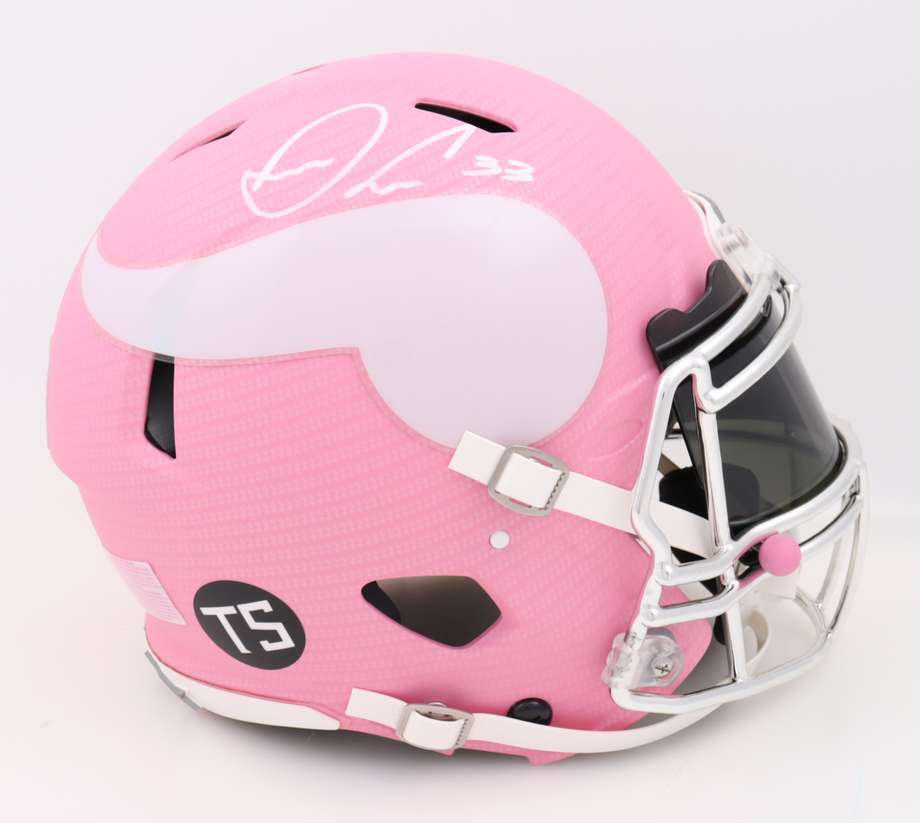 Riddell Minnesota Vikings full-size authentic on-field Carbon Fiber Speed helmet with visor. Hand-signed by Dalvin Cook.
