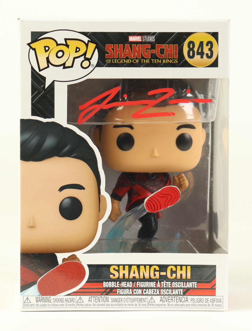 Funko Pop! Vinyl Figure measures approximately 4" in height. Packaging has been hand-signed by Simu Liu (Shang-Chi).
