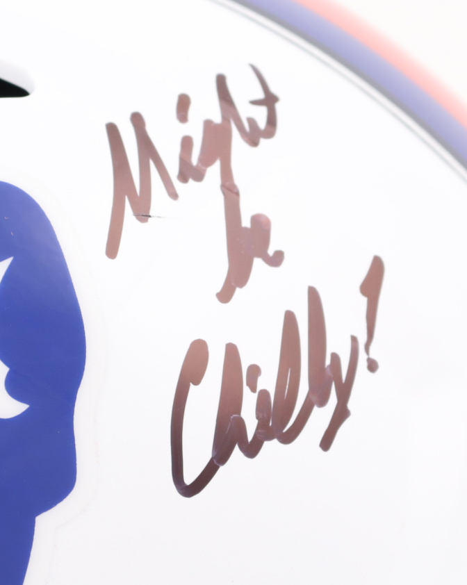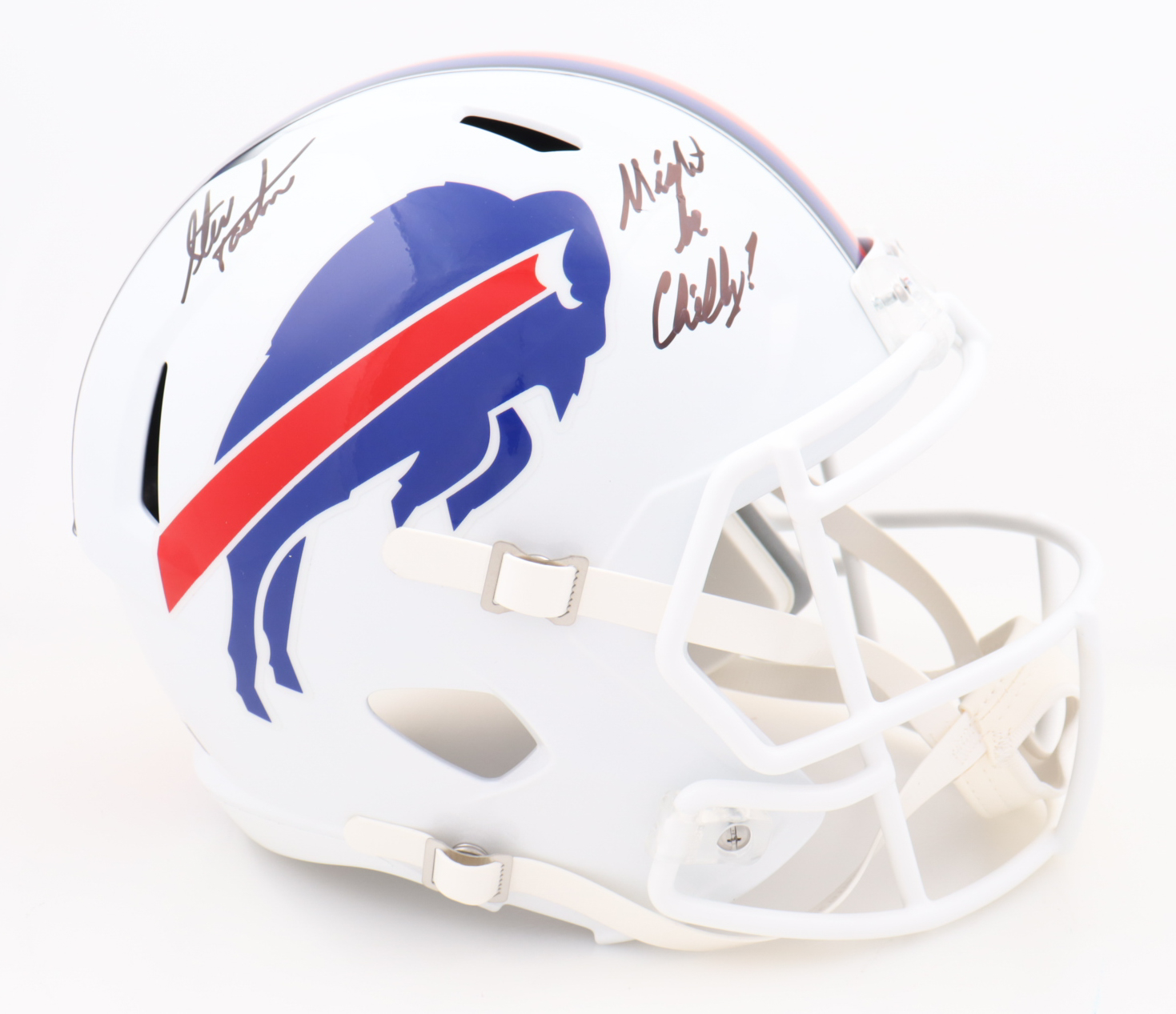 Steve Tasker Signed Bills Full-Size Speed Helmet Inscribed "Might Be Chilly!" (TSE)