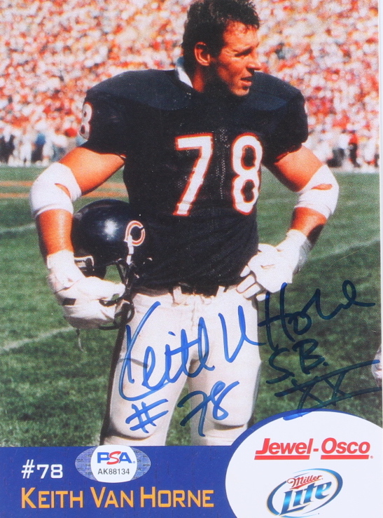 Photo measures 5" x 7" in size and has been hand-signed and inscribed by Keith Van Horne (Chicago Bears).