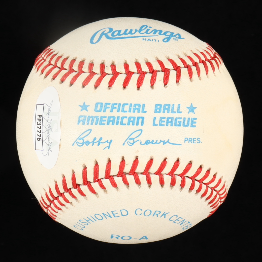 Rawlings Official American League baseball. Hand-signed by Carl Yastrzemski (Boston Red Sox, HOF). Please note, the baseball is naturally toned.