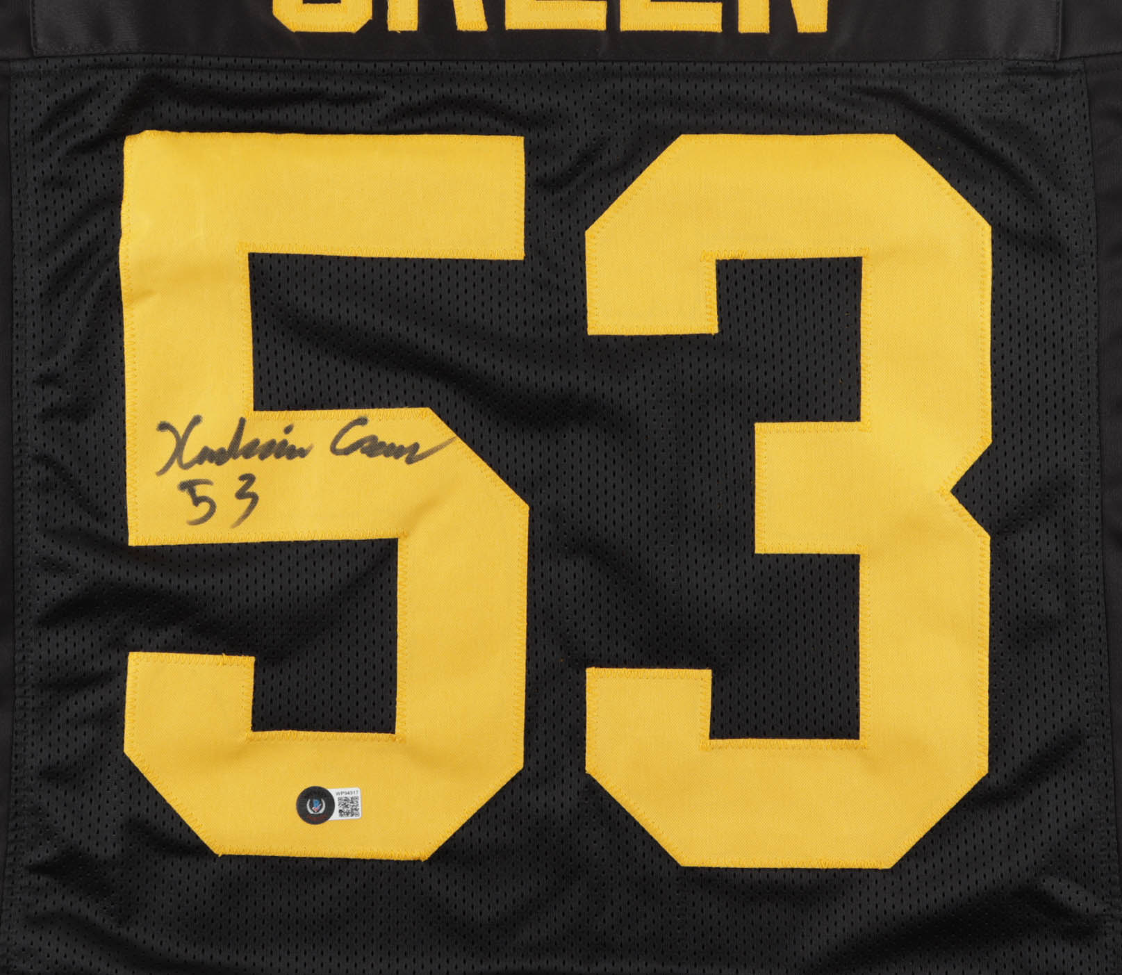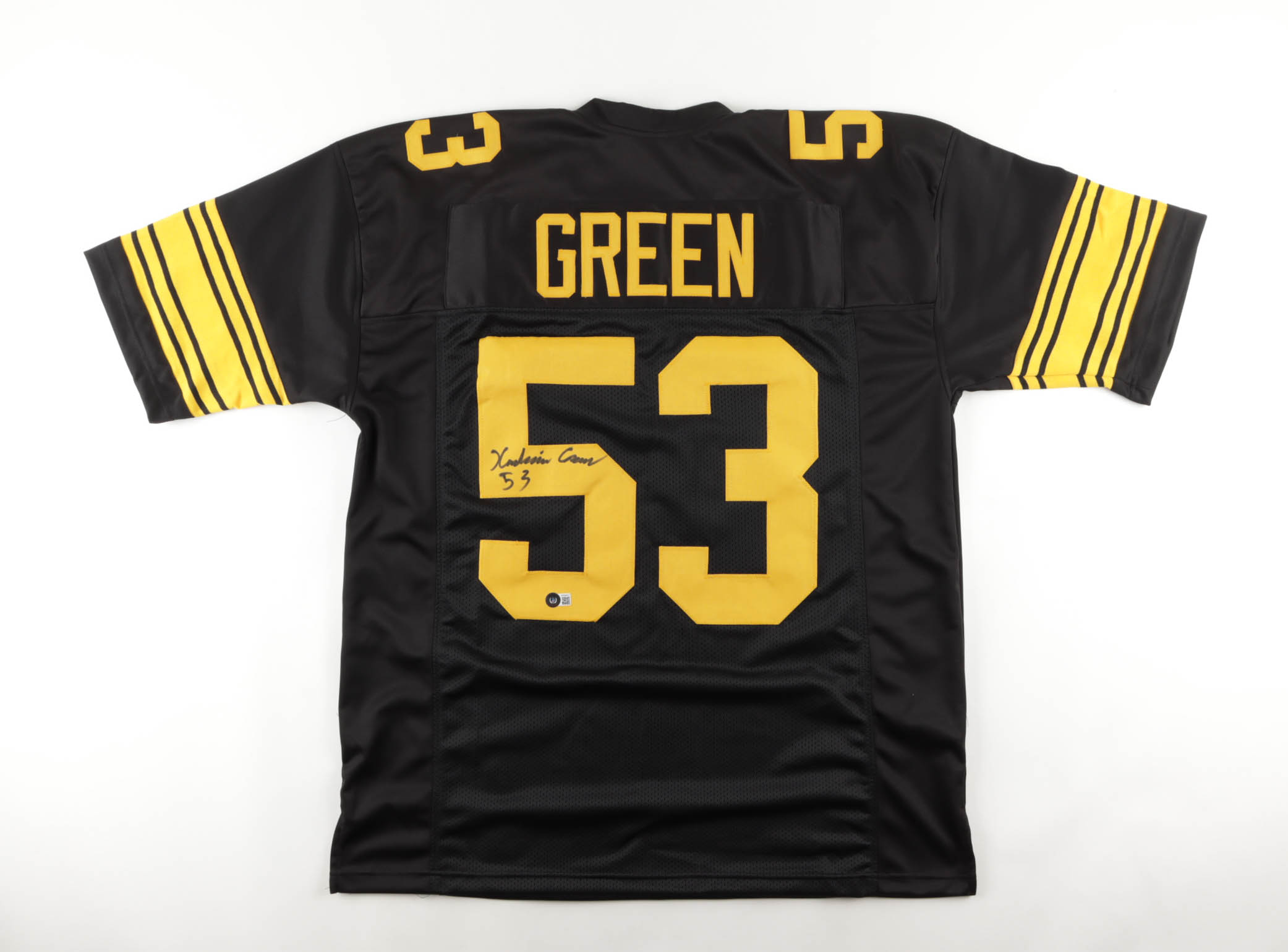Custom on-field style jersey. Everything is sewn on, size XL. Hand-signed by Kendrick Green.