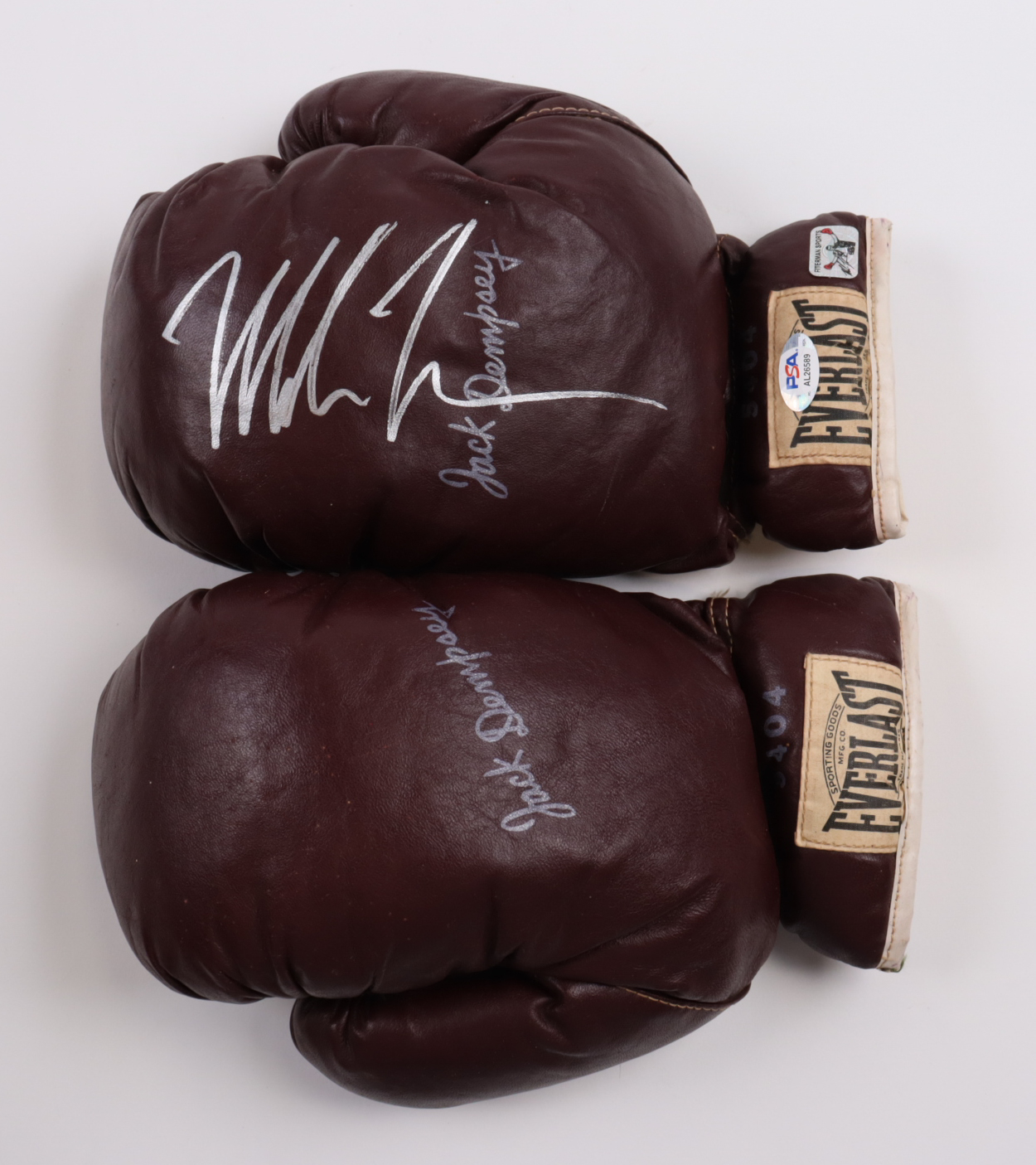 Mike Tyson Signed Vintage Pair of Everlast Jack Dempsey Boxing Gloves with Display Case (PSA & Tyson)