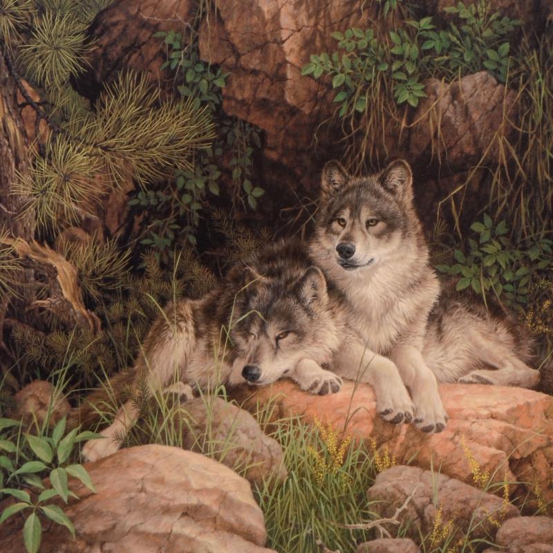 "Soul Mates - Gray Wolves" Numbered LE 23x18 Lithograph by Larry Fanning (PA)