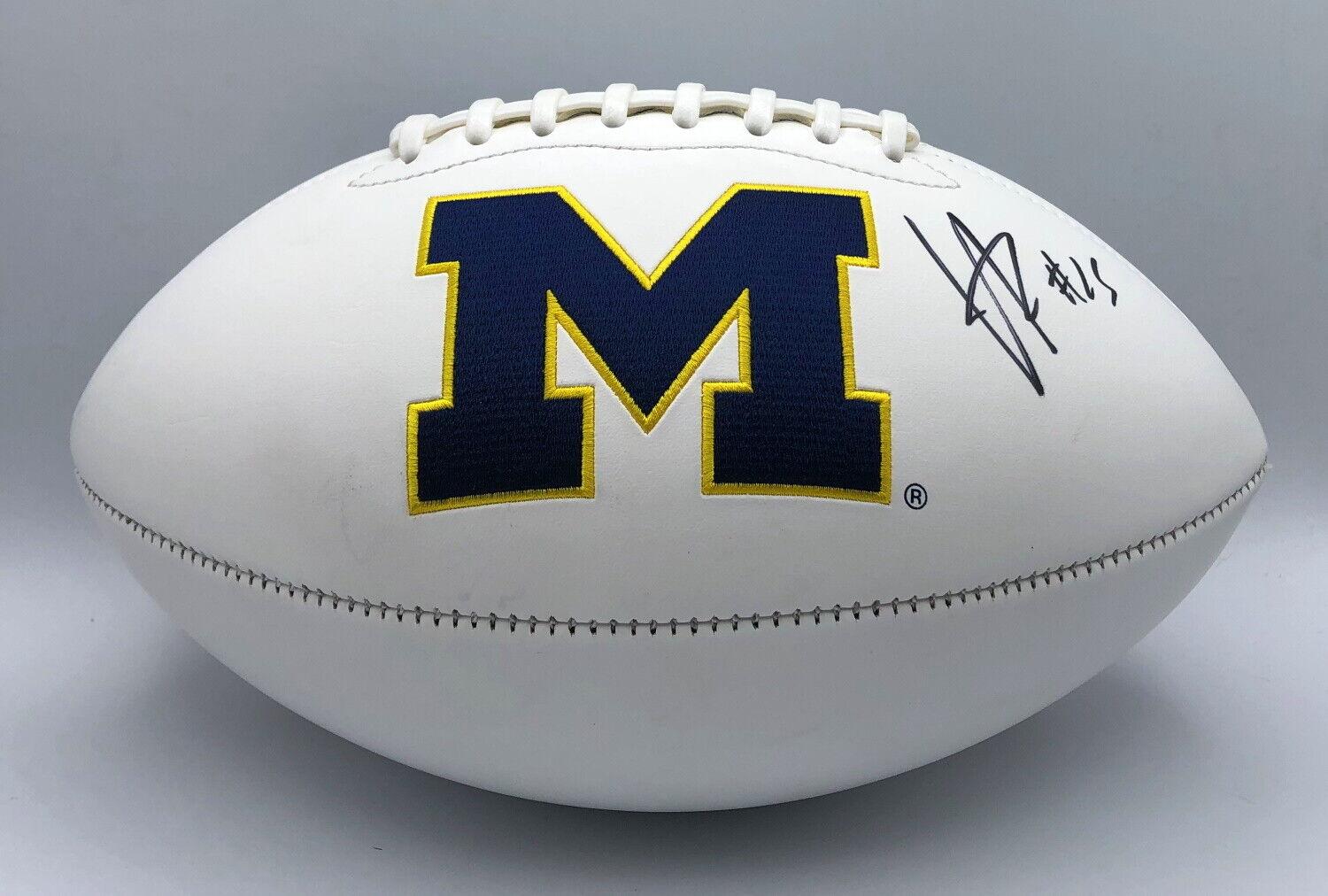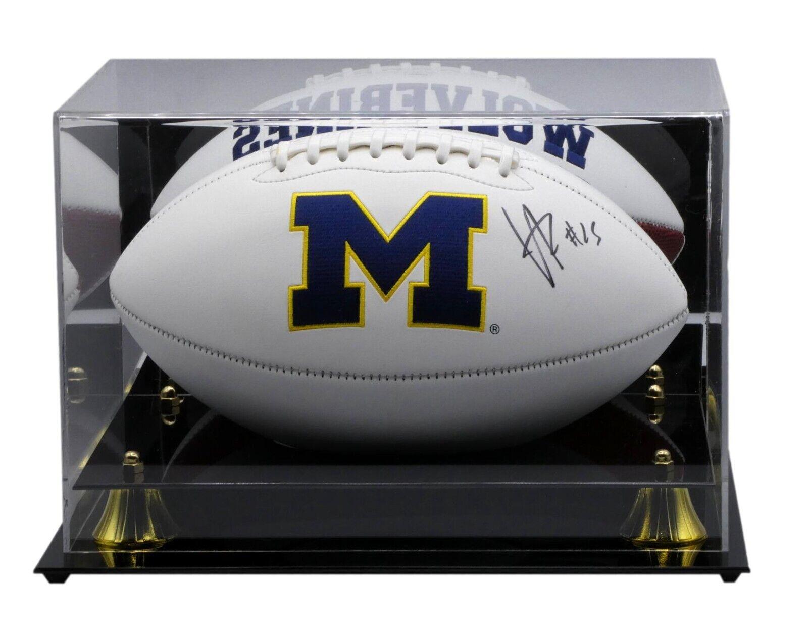 Michigan Wolverines logo football has been hand-signed by Hassan Haskins. Display case is included, as shown.