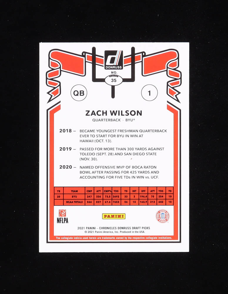 Zach Wilson 2021 Panini Chronicles Draft Picks Donruss Retro #35 RC