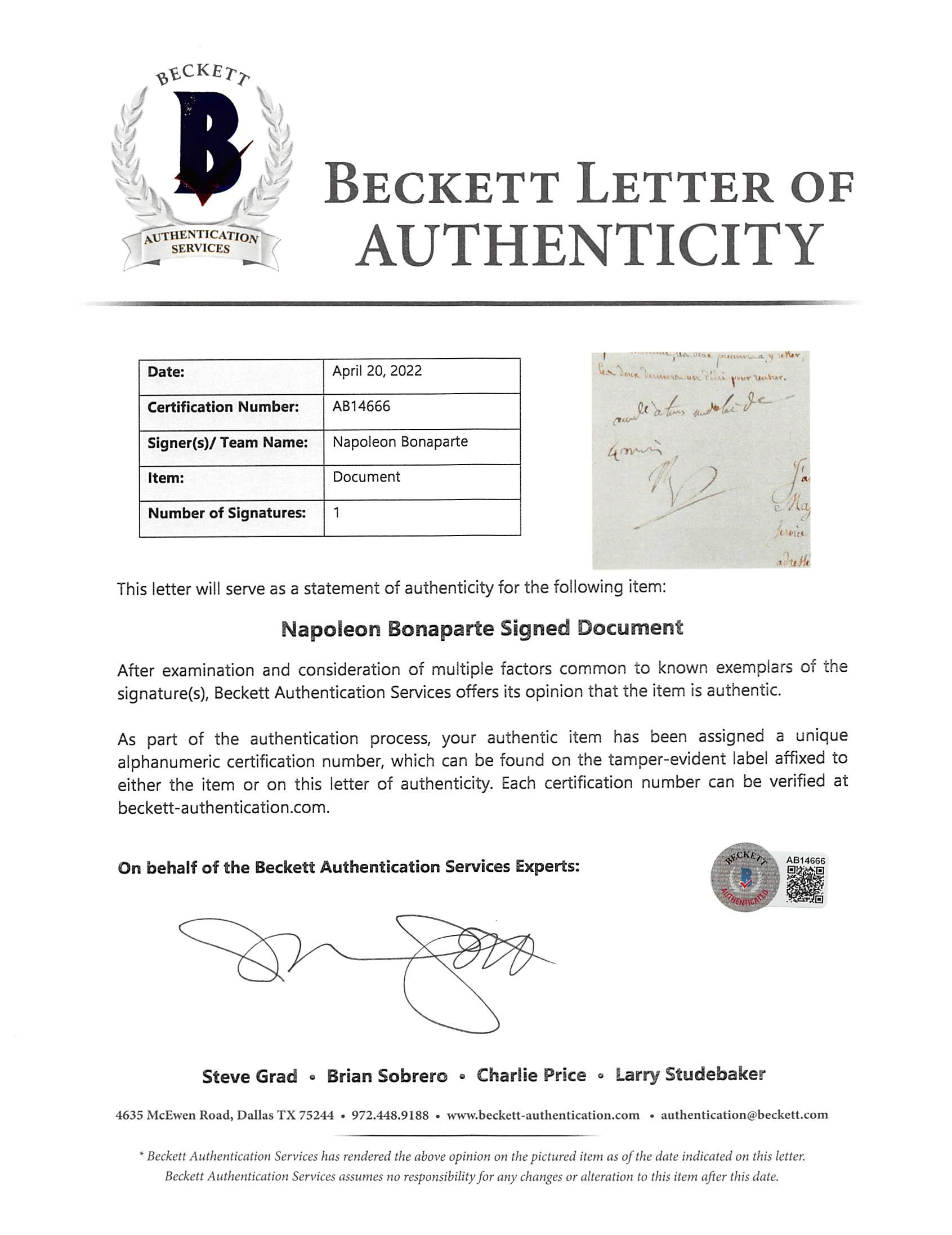 Napoleon Bonaparte Signed 7.75x12 Letter (Beckett)