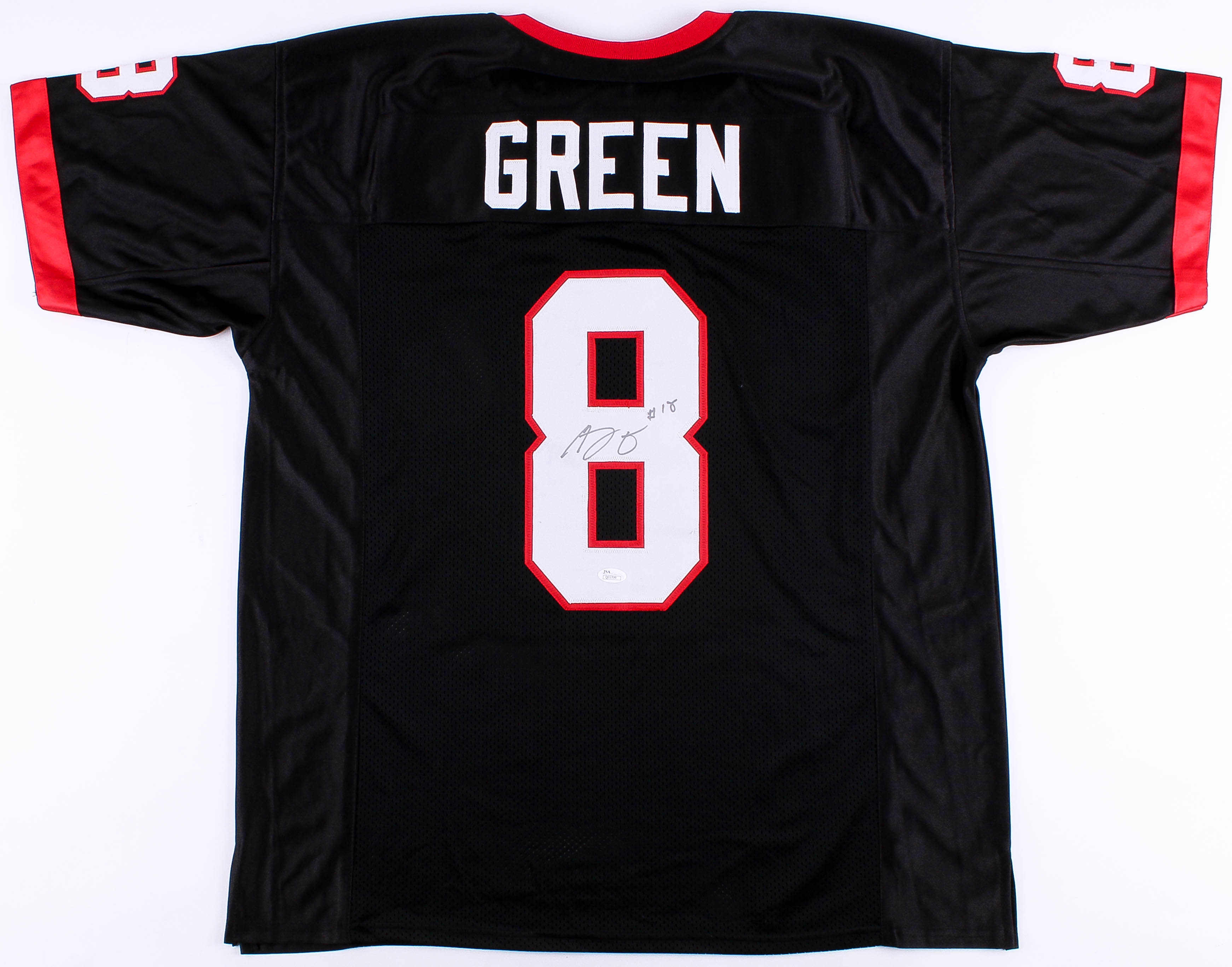 Custom on-field style jersey. Everything sewn on, size XL. Hand-signed in black felt tip pen by A.J. Green (Bengals).