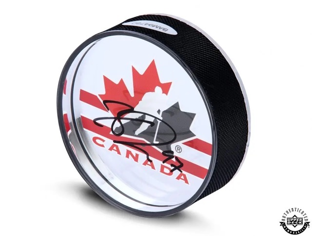 Connor McDavid Signed Team Canada Logo Acrylic Hockey Puck (UDA)