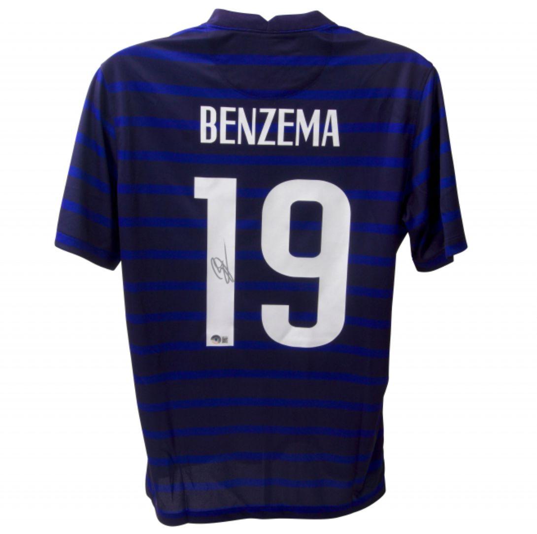 Nike on-field style jersey. Everything is printed on, size L. Hand-signed by Karim Benzema.
