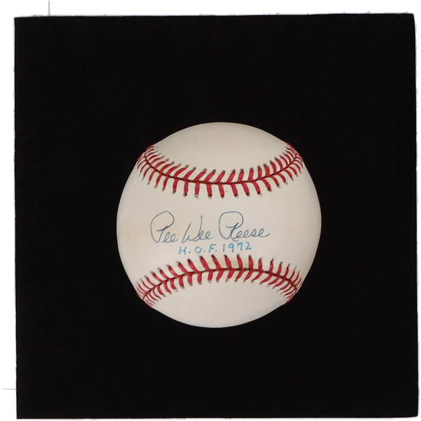Rawlings Official National League Baseball has been hand-signed by Pee Wee Reese (D. 1999, Brooklyn Dodgers, HOF). Please note, the inscription has been penned by an unknown hand.