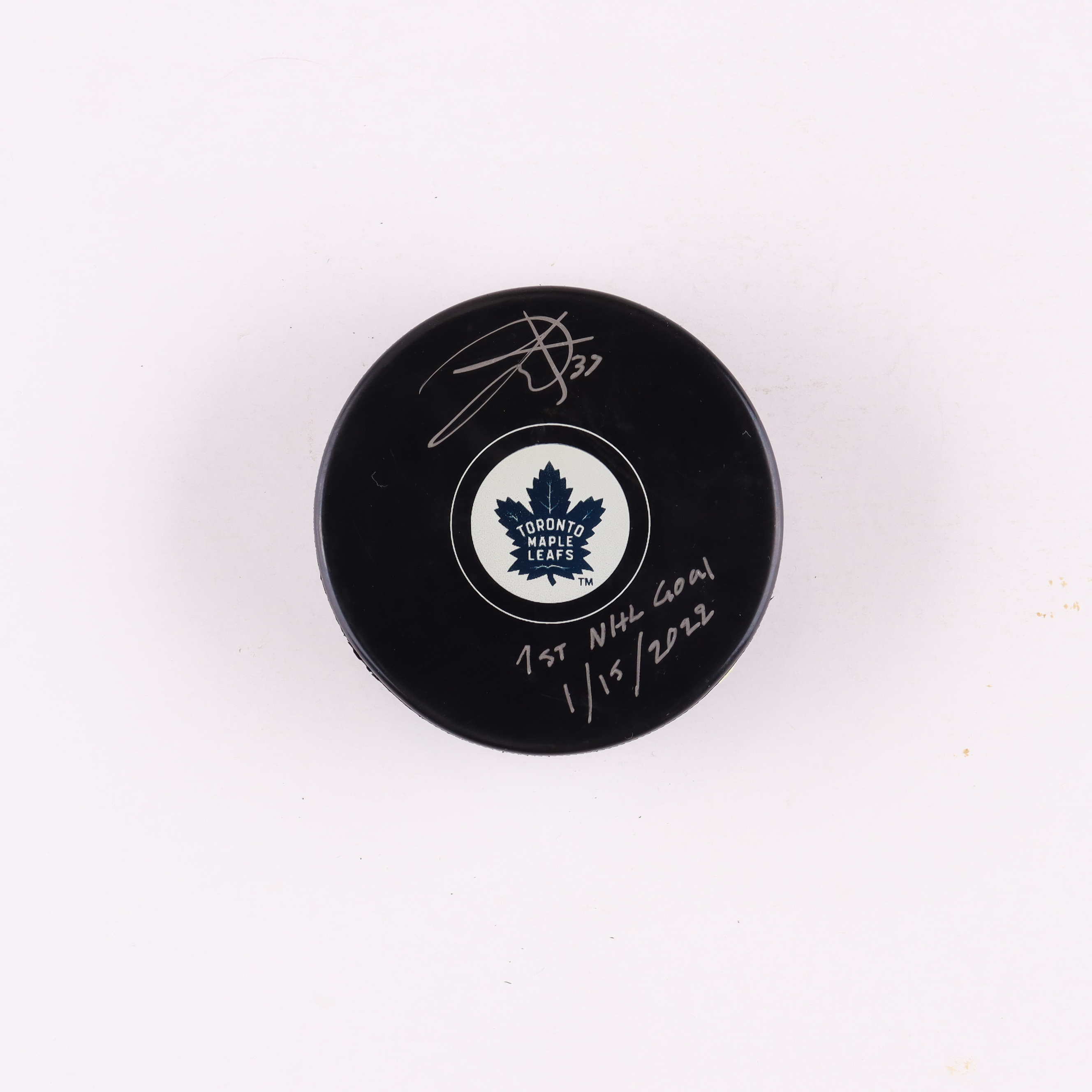 Timothy Liljegren Signed Maple Leafs Logo Hockey Puck Inscribed "1/15/2022" (COJO)