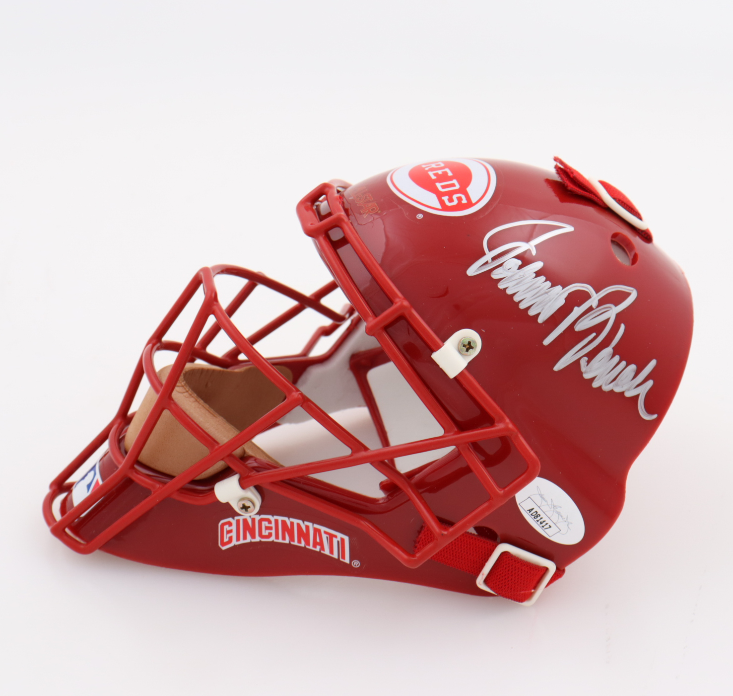 Cincinnati Reds mini catchers mask. Hand-signed by Johnny Bench (HOF).
