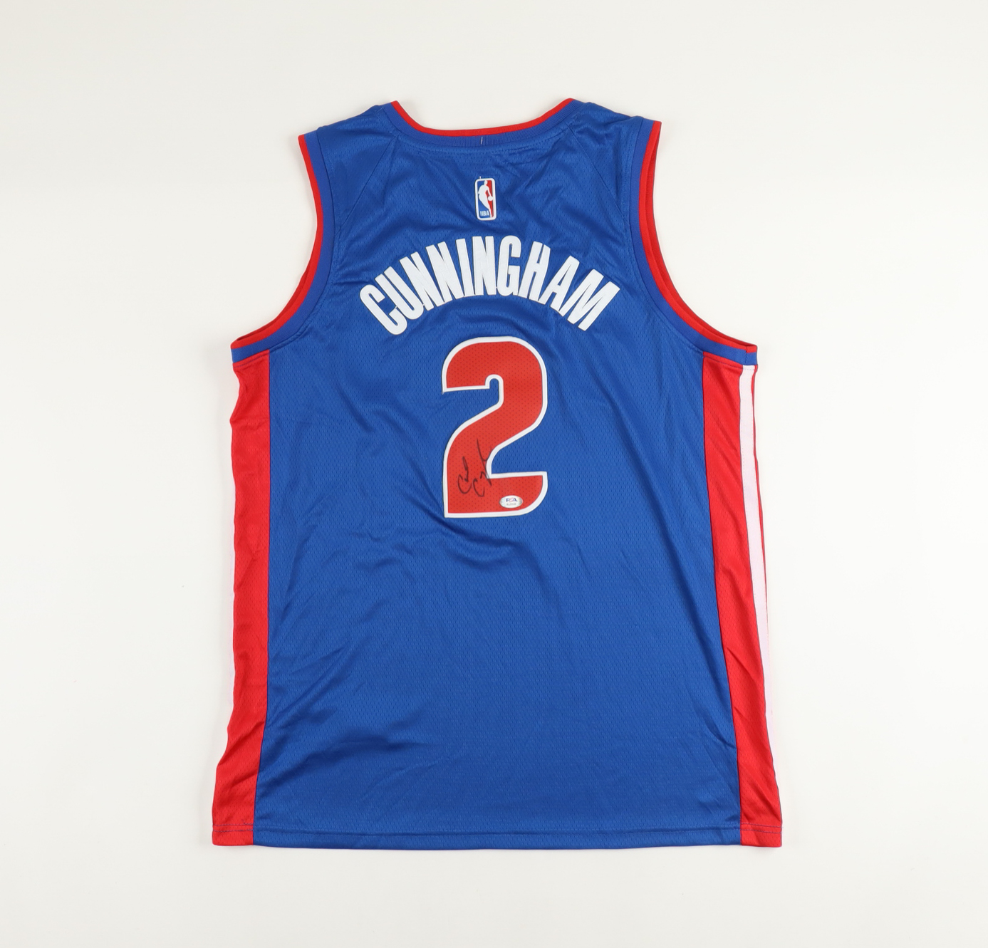 Nike on-court style jersey. Everything is printed on. Size L. Hand-signed by Cade Cunningham (Detroit Pistons).