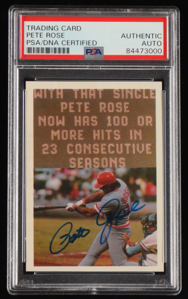Pete Rose Signed 1985 Topps Rose #120 Scoreboard (PSA)