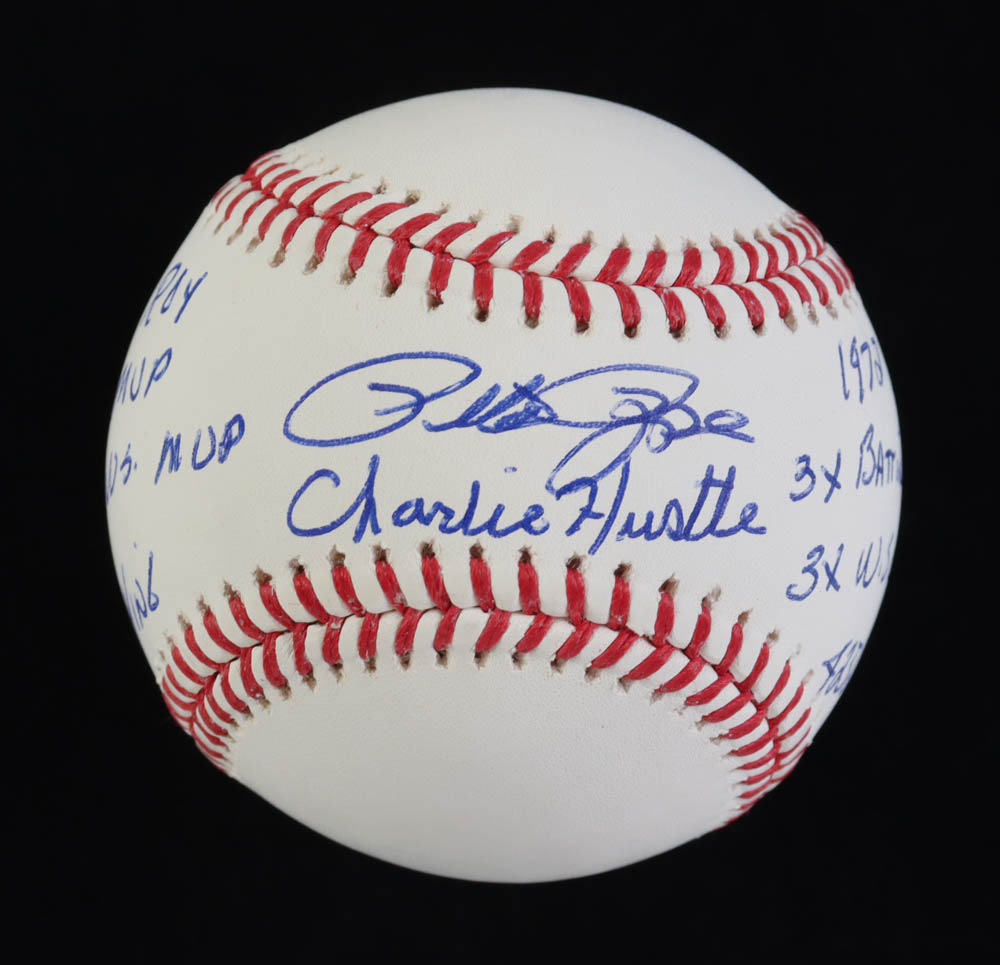 Rawlings Official Major League baseball. Hand-signed and inscribed by Pete Rose (Cincinnati Reds).