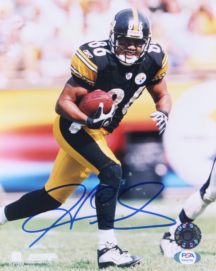 Photo measures 8" x 10" in size and has been hand-signed by Hines Ward (Pittsburgh Steelers).
