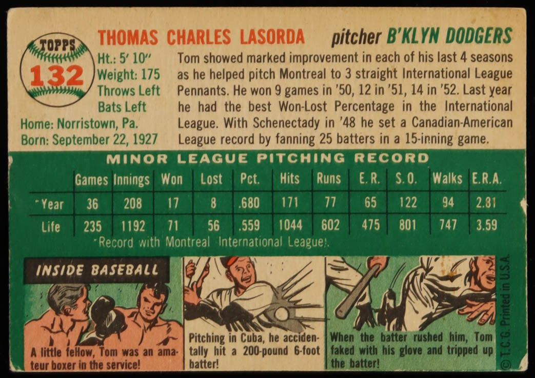 Tommy Lasorda 1954 Topps #132 RC