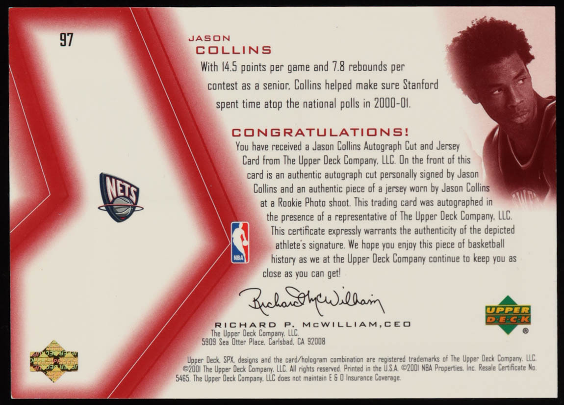 Jason Collins 2001-02 SPx #97A JSY AU RC #799/800